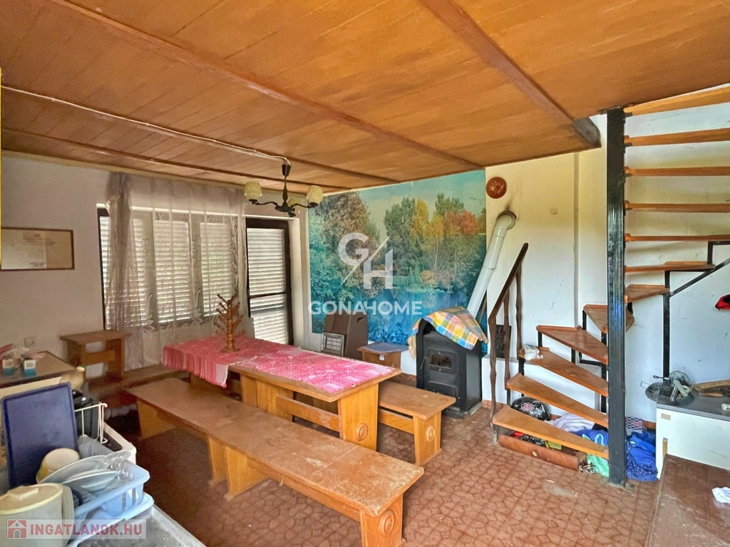 - Az épület földszintjén található egy konyha étkezővel és egy szoba (összesen 32 m2), tetőtérben pedig egy szoba (~12 m2).
