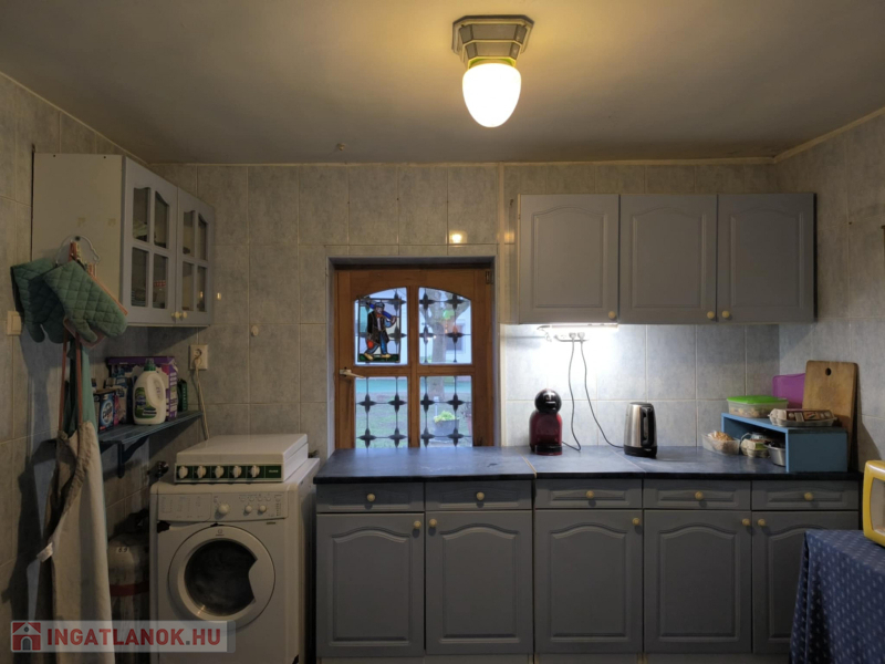 1. épület – 62,9 m²-es, vályogfalazatú, gondosan karbantartott házTágas előtér, nappali, hálószoba, konyha, fürdő + WC, kamra és kertkapcsolatos terasz.Fűtés: vízteres kandalló + inverteres klíma.Meleg víz: villanybojler.Az épület azonnal költözhető, teljes berendezéssel.