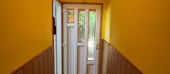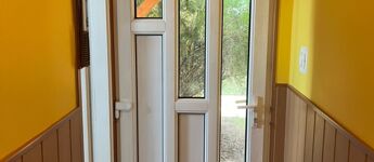 Szúnyoghálós nyílászárói gondoskodnak a rovarmentes pihenésről, míg az udvar kiváló helyszíne lehet a családi és baráti összejöveteleknek.
