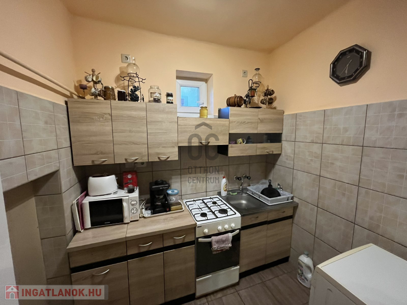 A 70 m²-es, jól beosztott házban zárt előtér, folyosó, 2 és fél szoba, konyha és étkező kapott helyet. A fürdőszoba frissen, 4 éve lett felújítva, a nyílászárók és az elektromos vezetékek is cserélve lettek. Télen gázfűtés és vegyes tüzelésű kazán gondoskodik a melegről, nyáron pedig a vastag falak miatt nincs szükség klímára. A ház folytatásában egy 18+18 m²-es melléképület található, valamint egy 20 m²-es gyári lemezgarázs is a kényelmet szolgálja.