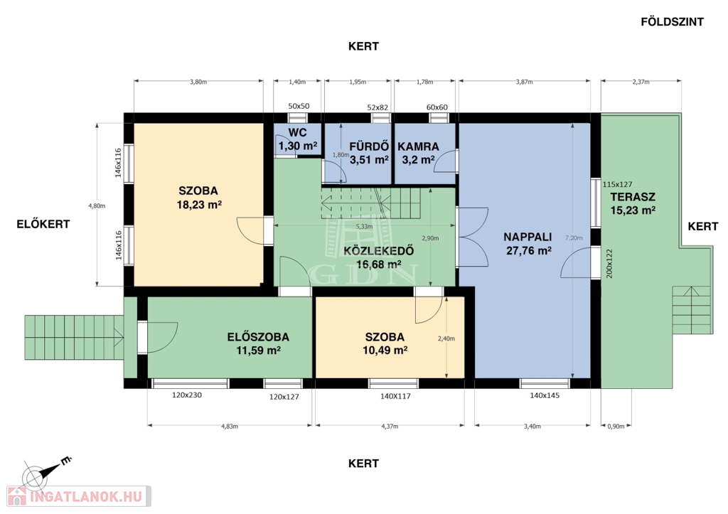 Extra felszereltség : elektromos aluminium redőnyök, szúnyoghálók, biztonsági kamera. Éjszakai beltéri világítás.