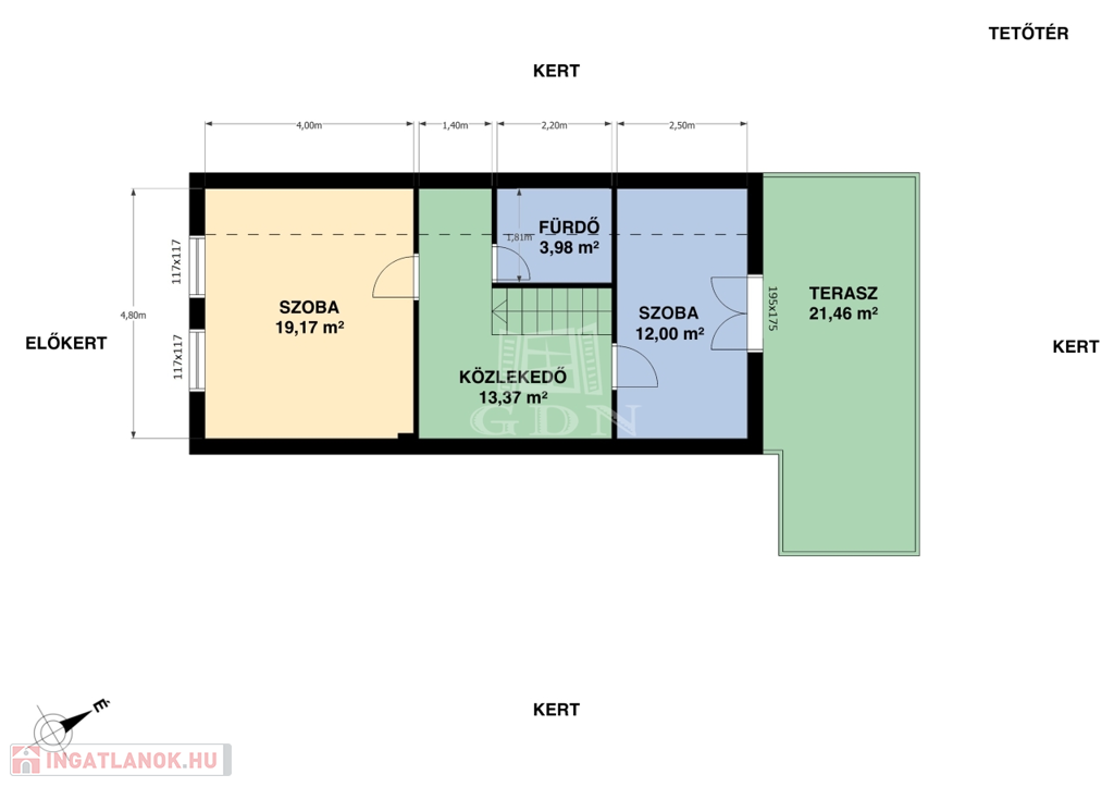 A tetőtér külön alkalmas lehet önálló lakás kialakítására.