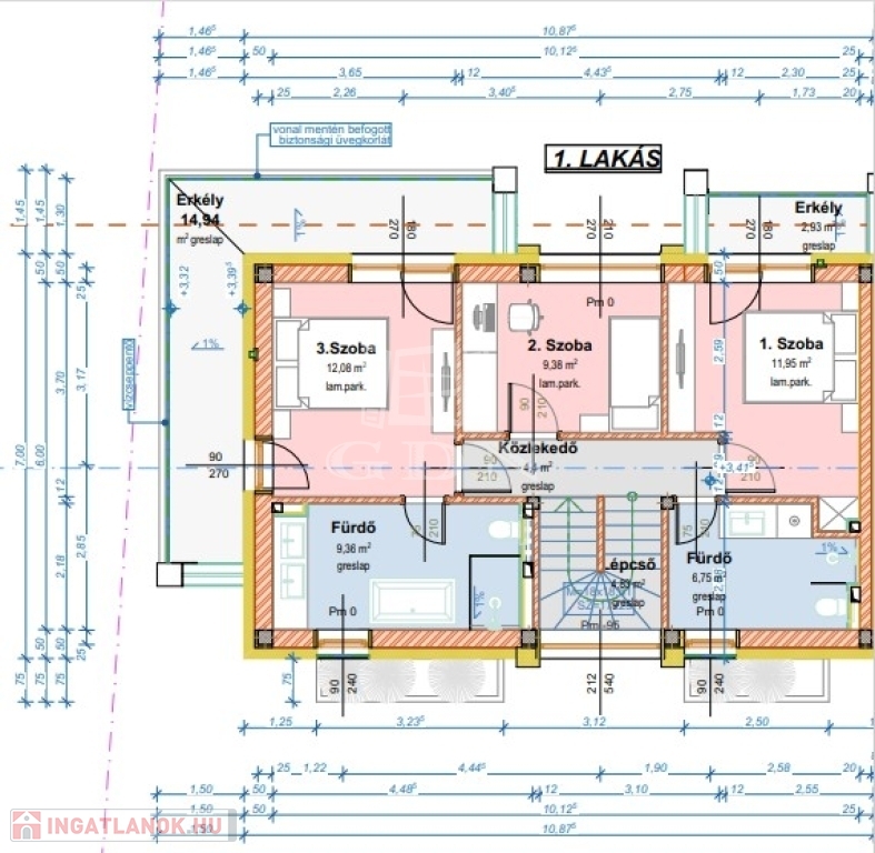 Fűtőtest: Az ingatlanokban padlófűtés és oldalfali fain coil rendszer készül.