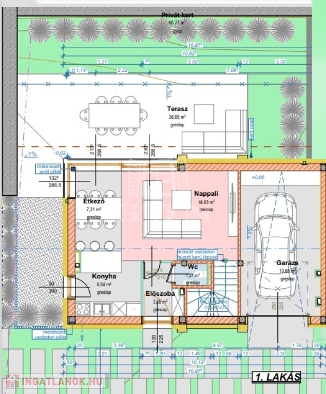Az ingatlan zöldövezetben kerül megépítésre biztosítva tulajdonosaik nyugalmát és pihentető kikapcsolódását.