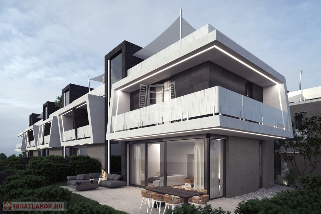A projektben 2 tömbből álló 5 illetve 4 lakásos sorházat valósítunk meg. Földszinttel, emelettel és egy exkluzív tetőterasszal, ezen felül az exkluzivitást emelve a teraszok és erkélyek rozsdamentes vonalmenti üvegkorlátot kapnak. A lakáshoz tartozik egy fedett gépkocsi beálló. Egyedi igény alapján vásárolható a lakásokhoz külső gépkocsibeálló. Mindegyik lakás saját lépcsőházzal rendelkezik, ami biztosítja a feljutást egészen a tetőteraszig.