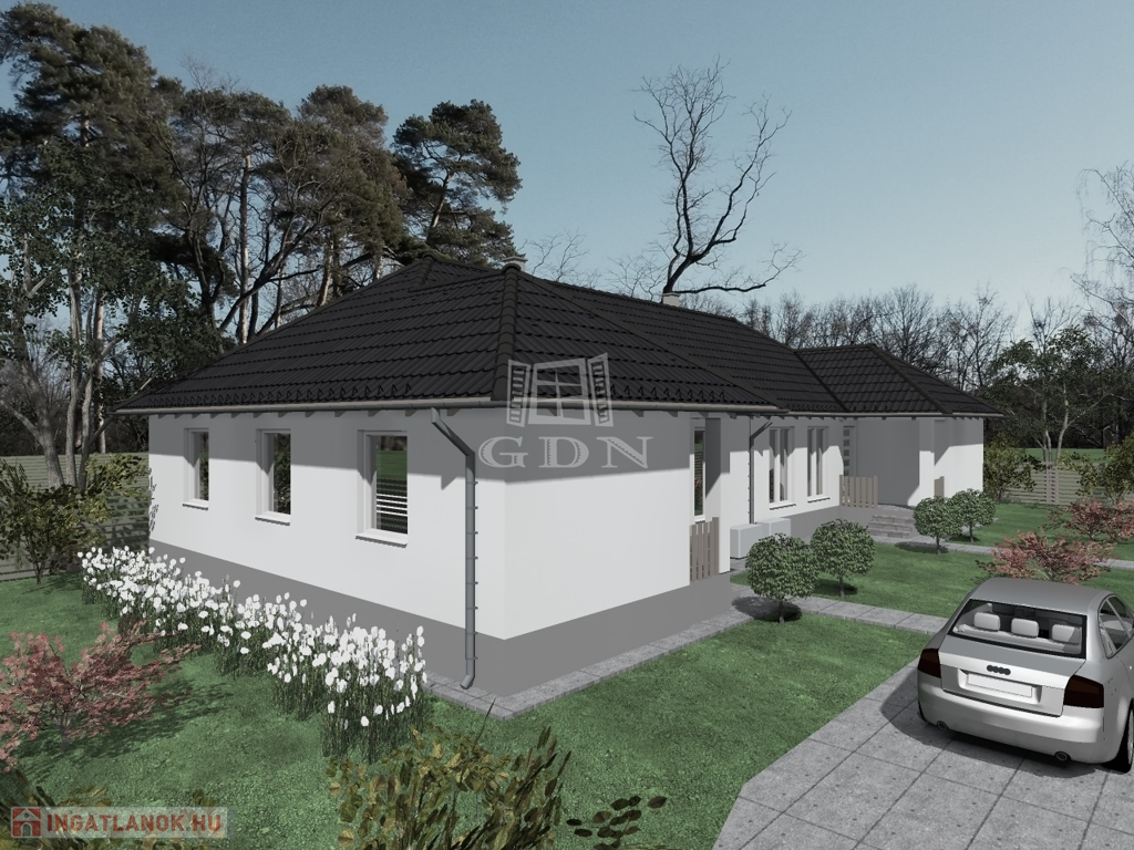Monor csendes, kertvárosias részén, cca. 300 nm-es telek területtel, Új építésű, 80 nm-es, 4 szobás (nappali + 3 hálószoba), egy szintes, hőszivattyús fűtéssel, Nyugati fekvésű, műanyag (3 rétegű) nyílászárós, szigetelt, fafödémes, új építésű ikerház fél eladó.