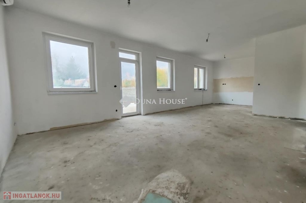 A ház jelenleg tető alatt áll, burkolásra vár.