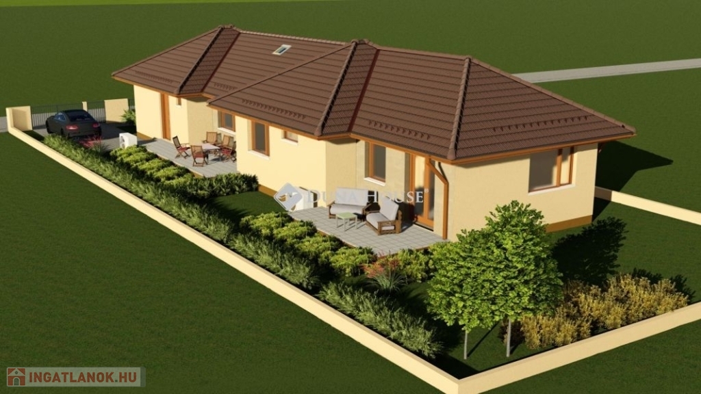 Telek területe 205 m2, az ingatlan szabadon álló építkezés így a bejárat jobb és bal oldalt külön leválasztva. Kényelmes praktikus legjobb választás.