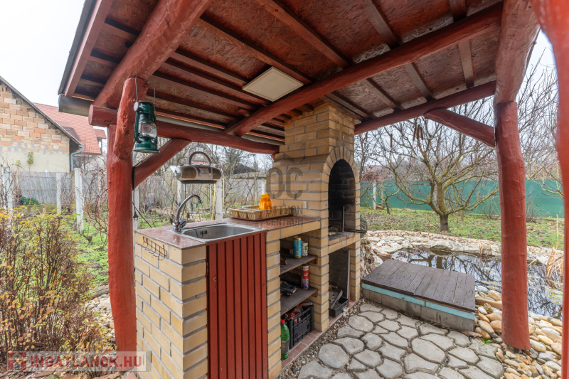 • hangulatos kerti szaletli kemencével és hideg–meleg vizes mosogatóval
