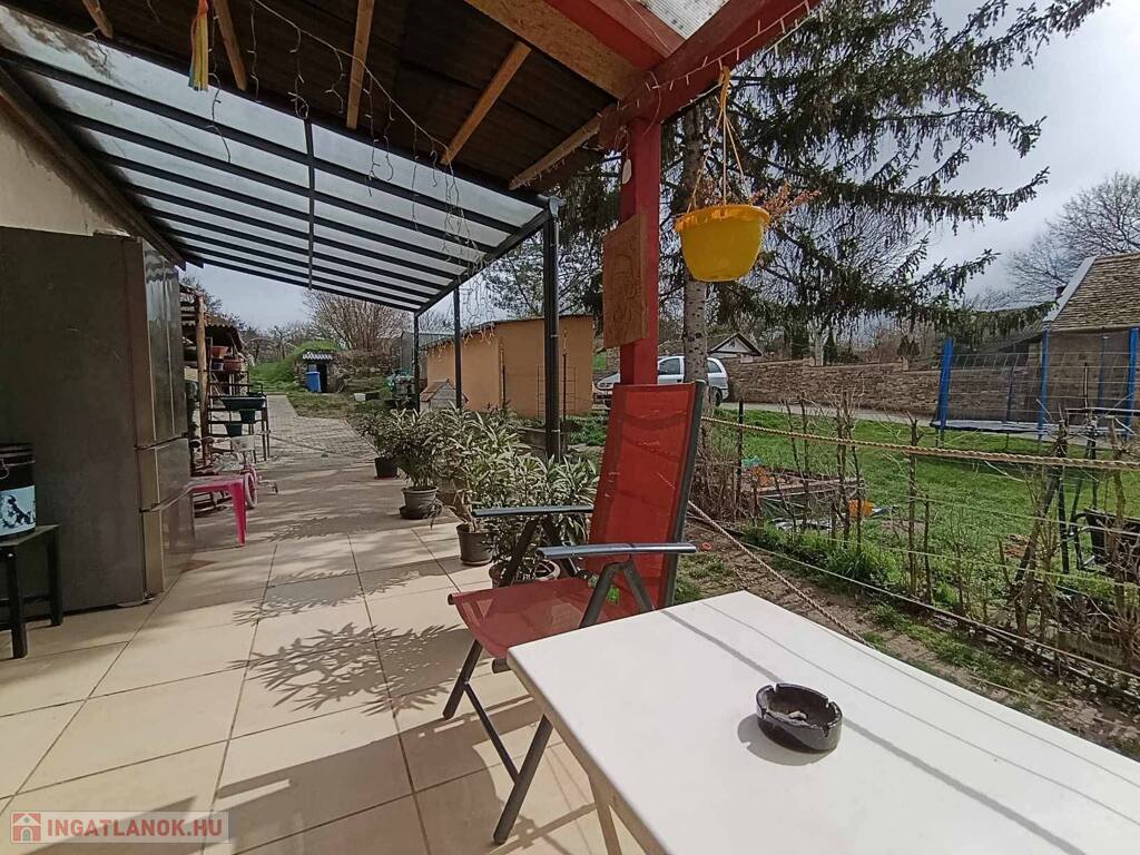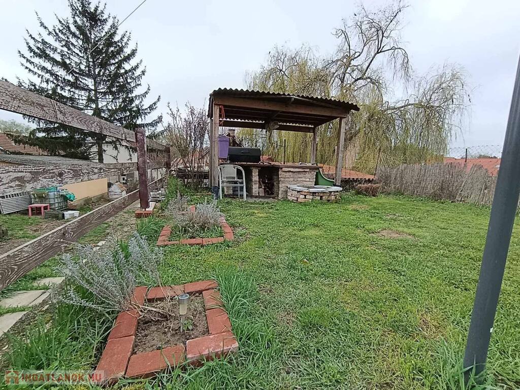 Alsó rész (1800 nm bekerített): A ház és a melléképületek kerítéssel körbezártak, bőséges gyümölcsfákkal (alma, körte), fólia sátor kerettel kialakított 4 magaságyással.