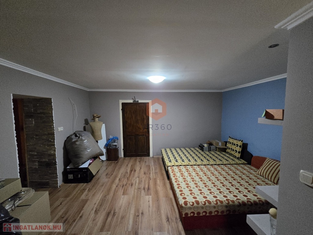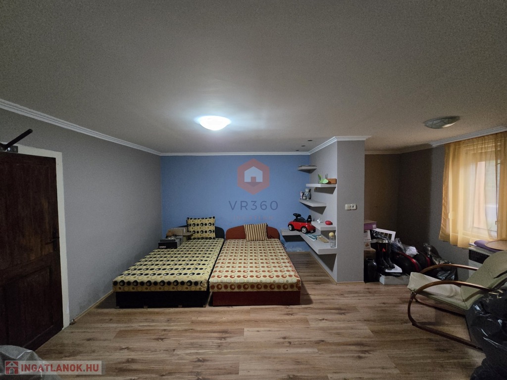 Eladásra kínálunk egy 130 m² hasznos alapterületű, vegyes falazatú (vályog + tégla) családi házat, amely egy összesen 2055 m²-es, dupla telken helyezkedik el. Az ingatlanban 3,5 szoba, konyha, étkező, fürdőszoba, külön WC, spájz és tároló található. A fűtést gázkonvektorok és fatüzelésű kályha biztosítják.