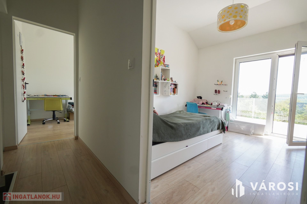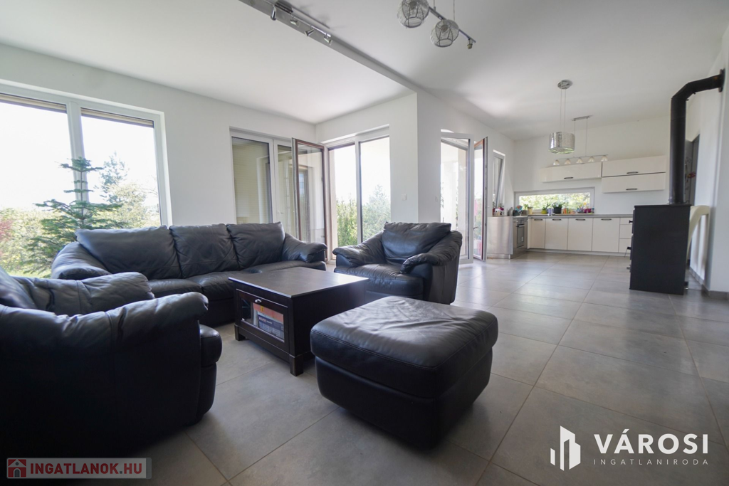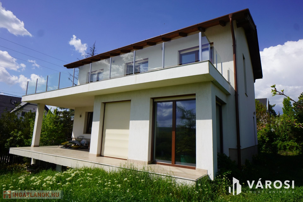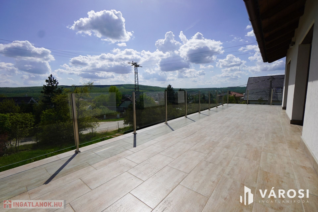 A ház Nagykovácsi magasabb pontján helyezkedik el melyállandó panorámás kilátást biztosít a 25nm-es teraszről és a felette elhelyezkedő 35nm-es erkélyről is! Jöjjön el és gyönyörködjön Ön is a kiltásban!
