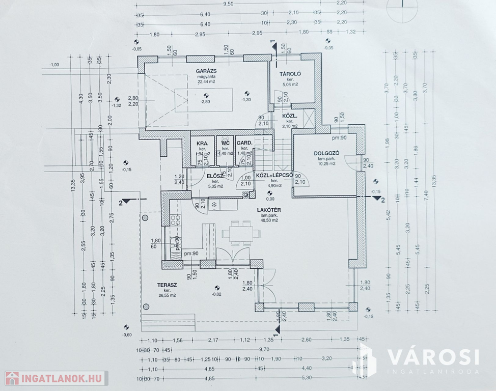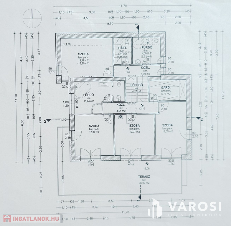 -nettó 210nm-es családi ház(amerikai konyhás nappali, 4 hálószoba, dolgozó, 2 fürdőszoba, garázs szerelőaknával, 2 kamra, gardrób, közlekedő)