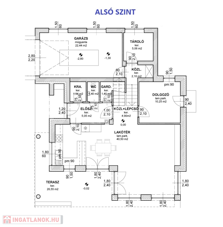- Amerikai konyhás nappali, terasz kapcsolattal,