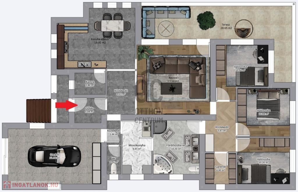 - Az 1038 m2 területen elhelyezkedő ingatlan, nettó 152 m2.