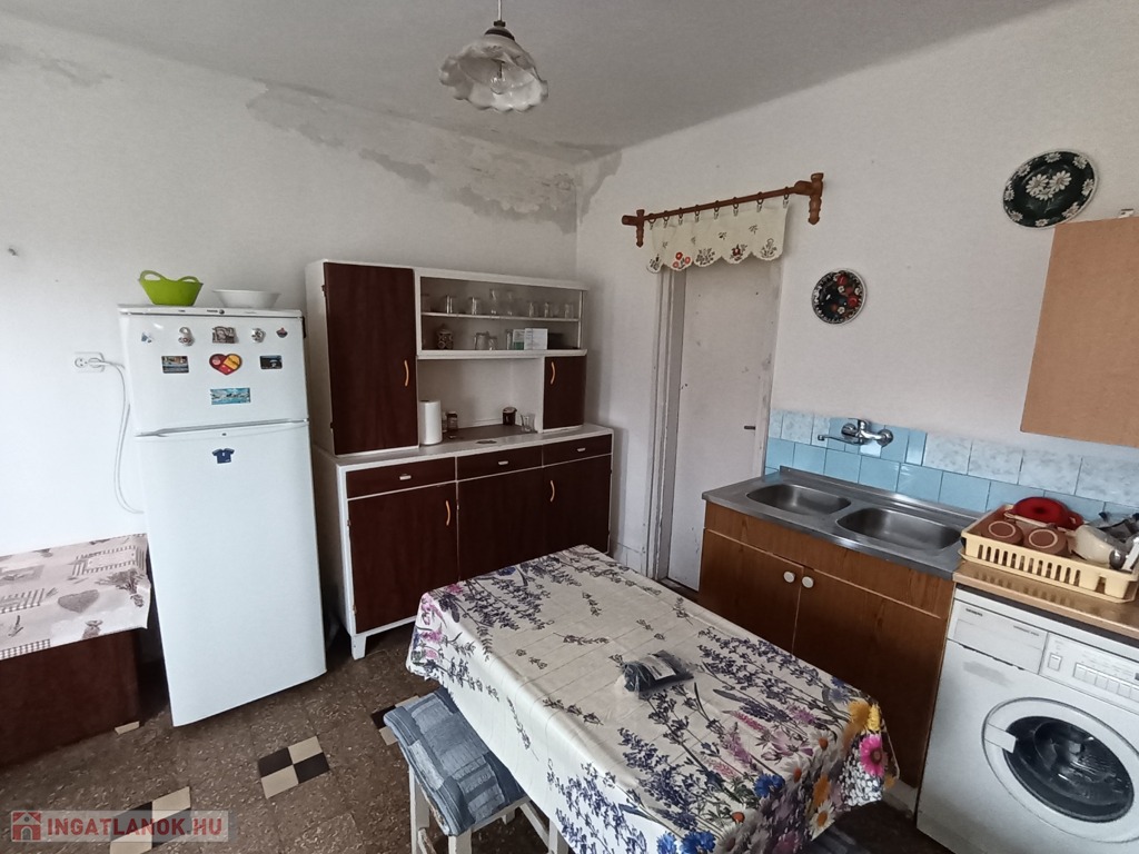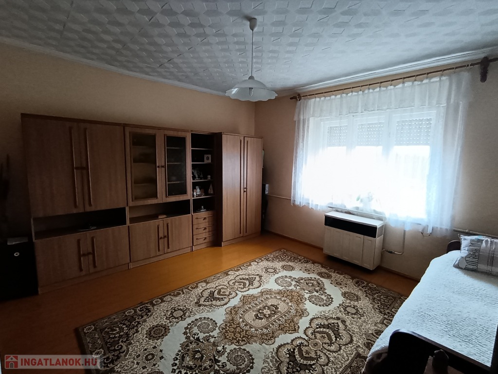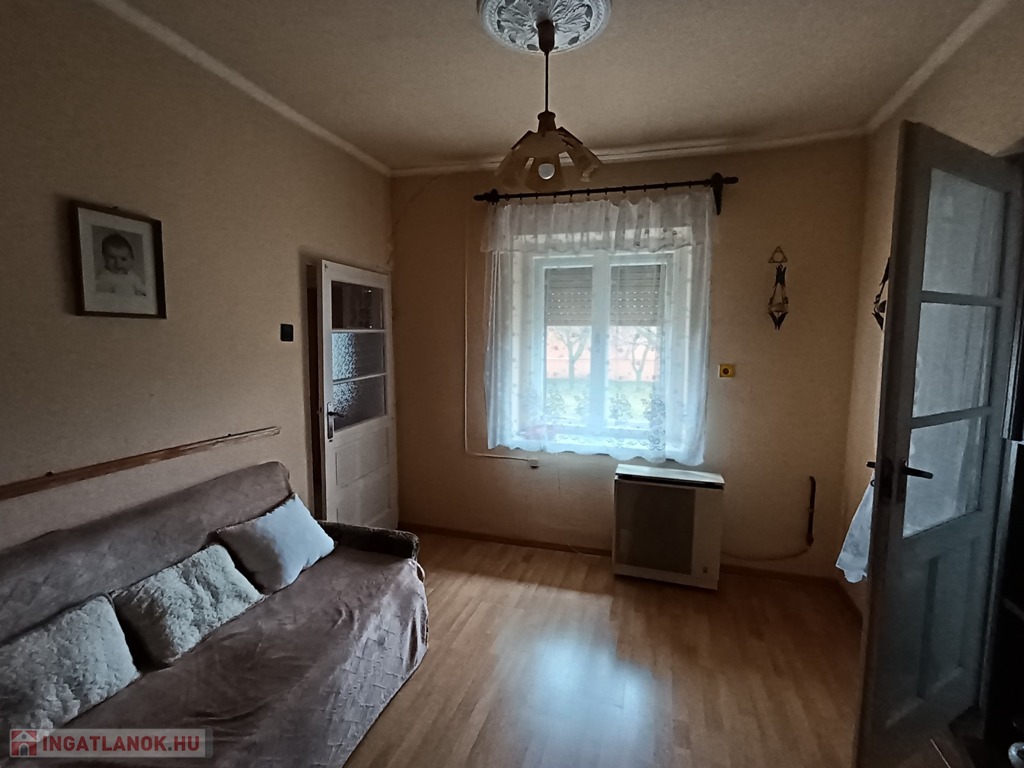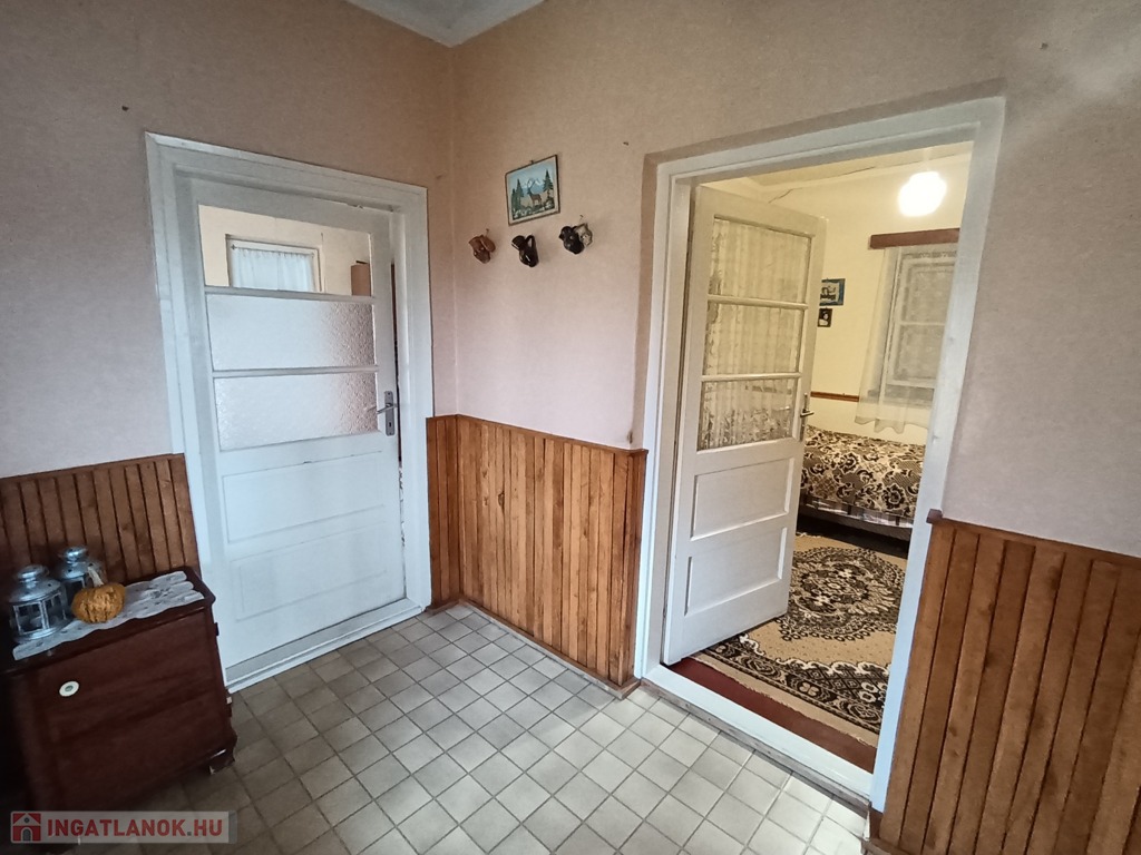 Az ingatlan 1962-ben épült kőből. Tetőszerkezetét pala borítja. A háznak2 bejárata van. az első bejáraton egy tágas előszobába lépünk, továbbá a három szobába. A második bejáraton a konyhába, illetve a fürdőszoba helyiségbe. A ház elejétől a végéig egyben járható. Nyílászárói fa anyagból készültek, melyek kifogástalan állapotban vannak. Minden szoba falazata színre van festve. Az első szoba hajópadló, a második szoba kő a harmadik szoba illetve az előszoba lamináltpadló, a fürdőszoba és a konyha járólappal burkolt. Minden helyiségben gázkonvektoros fűtés biztosítja a meleget illetve az első és a második szoba fala között egy beépített cserépkályha. A melegvízet villanybojlerről kapjuk, a főzést pedig a gáz látja el.