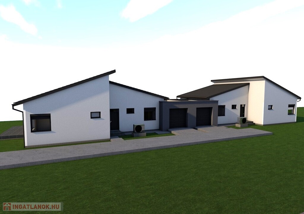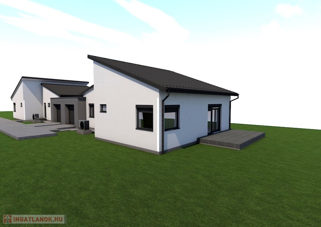 Nyírpazony-Kabaláson 2026-ba minőségi anyagokból épülő iker családi ház már foglalható. Az ingatlan alapozása monolit vasbeton sávalap, teherhordó falak 30 cm-s kerámia falazóblokk, válaszfalak 10 cm-s pórusbeton, tető szerkezet és a födém szeglemezes fa, félnyereg tetőszerkezet aminek az alsó öve egyben a zárófödém is. Külső nyílászárók 3 rétegű üvegezésű műanyag mely kívülről antracit belülről fehér színű tartozik hozzá a tokkal hasonló színű redőny és mobil szúnyogháló. Belső falak gépi vakolással végezve, glettelve, simítva. Szigetelés padlóban 12 cm-s, födémen 30 cm-s, homlokzat 15 cm-s, lábazat 15 cm-s, vízszigetelés 1 réteg bitumenes lemezszigetelés. Fűtése hőszivattyú mely padlóra vezérelt, 1 db. Split klíma 3,5 kw. meleg víz 200 L-s indirekt tartályról. A ház hasznos fűtött alapterülete 96,6 m2-s, 3 hálószoba, nappali+amerikai konyha, háztartási helység, 2 fürdőszoba+wc, továbbá tartozik hozzá 18 m2-s nyitott, burkolt terasz és 17 m2-s garázs melynek automata kapu és garázskapu bejárata van. Az árban hozzá értendő a szép kerítés és térkövezett járda és garázsfelhajtó. Az ingatlan garantáltan megbízható kivitelező által épül. Amennyiben felkeltettem az érdeklődését kérem mihamarabb hívjon!