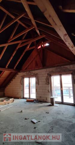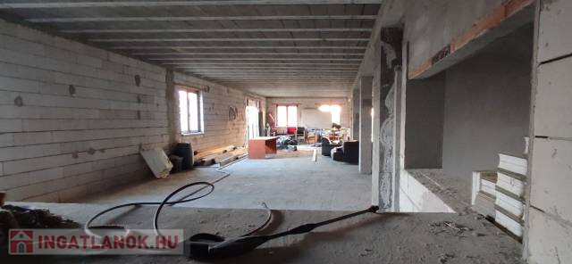 Amit az ingatlanról tudni lehet: 995 nm2-es telken fekszik félig elkészült állapotban. Található benne egy mélygarázs, ami 3,3 m körüli belmagassággal rendelkezik és 300 nm alap területtel. Az első szint is 300 nm2 területű ahol kialakítottak egy pizzériának pultot,kemencét és konyha részt átadóval. Itt alakítottak még ki mellékhelységet a személyzet részére tusolóval. Valamint a vendégek részére is került be mellék helység. Ez a szint 2 bejárattal rendelkezik, plusz 2 kis fedett terasz tartozik hozzá. A második szint ami egyben a tető tér, ami teljes mértékben beépíthető, ez a szint is 300 nm2. Itt is találunk egy fedett teraszt. A ház ytong téglából épült, beton kefni födémmel. A mélygarázsba kialakításra került a villanyhálózat, a többi szinteken nem. Víznek kiállások kialakításra kerültek. Műanyag új nyílászárók kerültek be. A tető fa szerkezetű,cserép fedéssel,csatornával. A 2 szint összes alapterülete 600 nm2. Jó szomszédok, csendes, madárcsicsergős környék. Közelben vasút,busz,óvoda,iskola, Tesco,benzinkút.