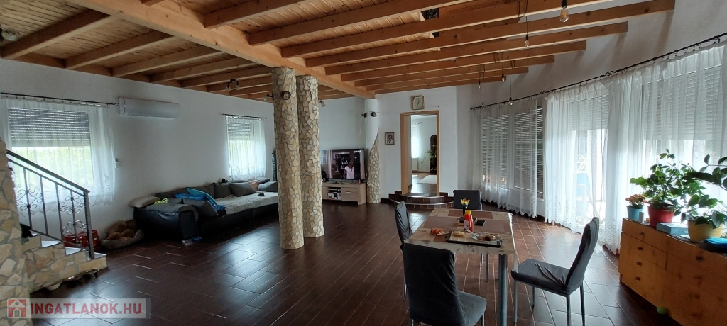 A 320 m²-es ház egy 864 m²-es, összközműves telken helyezkedik el. A fűtésről és melegvíz-ellátásról vegyes tüzelésű kazán, gázkazános cirkófűtés és elektromos bojler gondoskodik, a kellemes hőérzetet pedig három darab klímaberendezés biztosítja. A 14 kW-os napelemrendszernek köszönhetően az ingatlan szinte teljesen önfenntartó, ipari áram (3x32 A) is rendelkezésre áll.