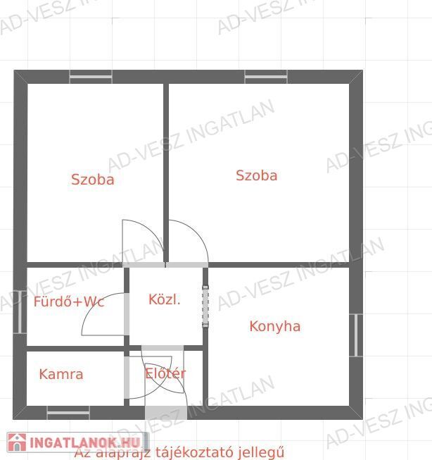 Az ingatlanban kialakításra került 2 hálószoba, fürdőszoba, konyha, előszoba, kamra, közlekedő.