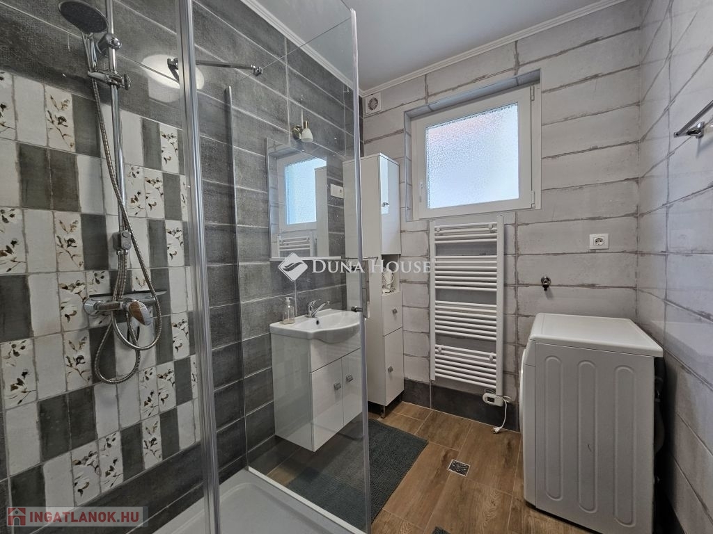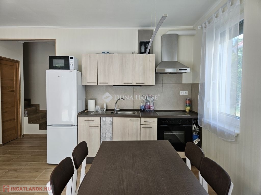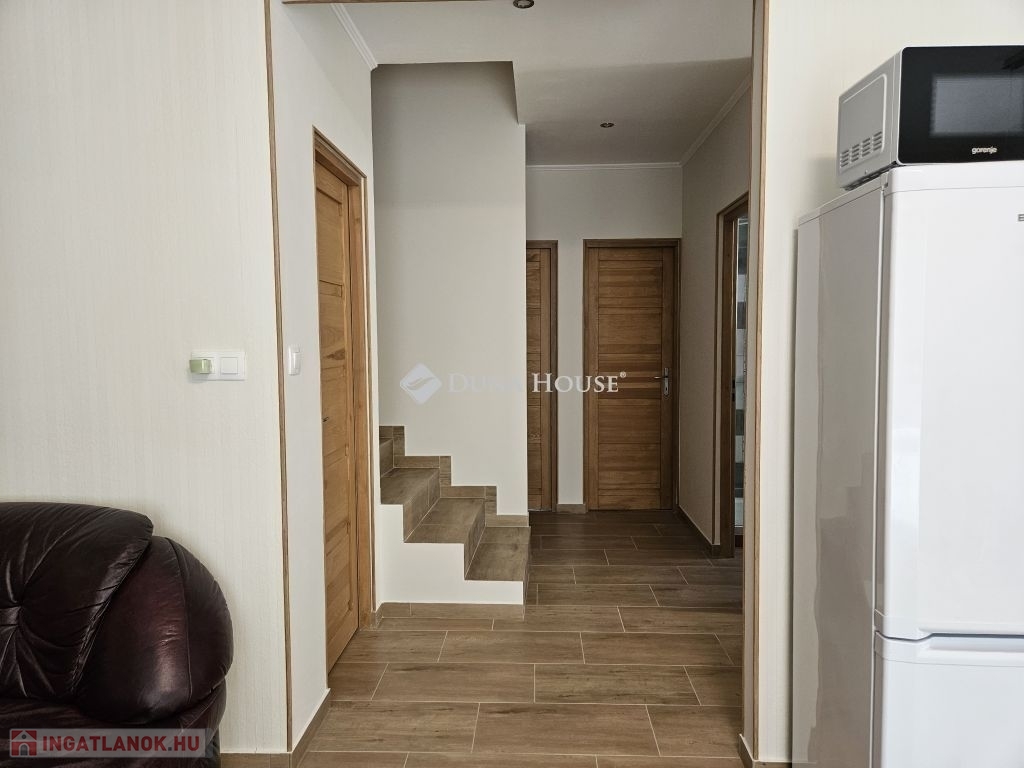 Orfűn a Pécsi tóhoz és a központhoz közel, egy csendes utcában eladó 1/1 tulajdonú 2020-ban épült, sosem lakott (gyakorlatilag új) családi ház. A ház két szintes, a földszint teljesen beépített a következő helységekkel: nappali-konyha, fürdő, külön wc, egy tároló/gépészeti helység, közlekedő lépcsőházzal és két szobával. A tetőtér 1m magas térdfallal készült jól beépíthető kialakításban, a 3db oromfalon 2-2db ablakkal ellátva. Az emelet hasznos alapterülete 52 négyzetméter (59m2 beépíthető). A ház összesen kb.120 lakható négyzetméterrel rendelkezik. Az udvar 420 négyzetméteres, nagyobb része teljesen vízszintes, további része egy támfalt követően emelkedik. Hátul burkolt 36 négyzetméteres terasz található, az épület körül burkolt járda készült. Épületszerkezet: 30cm Porotherm Klíma tégla + 8cm EPS szigeteléssel készült falak, vasalt felbetonnal ellátott E-gerendás vasbeton födém, vasbeton lépcső. Műanyag ablakok 3 rétegű üveggel TROCAL tokkal, alumínium redőnnyel és szúnyoghálóval ellátva készültek (teraszajtónál motoros redőny). Napcella 4,2kW (szaldós), villanybekötés: 3x16A, új víz és szennyvízrákötés készült az építés során, a telek gázcsonkkal is rendelkezik. A lakrész padlófűtéssel ellátott, jelenleg villanykazánnal fűtve, de ez kicserélhető split rendszerű hőszivattyúra, melynek védőcsövezése elő van készítve az épületben. További kérdés esetén hívjon bizalommal.