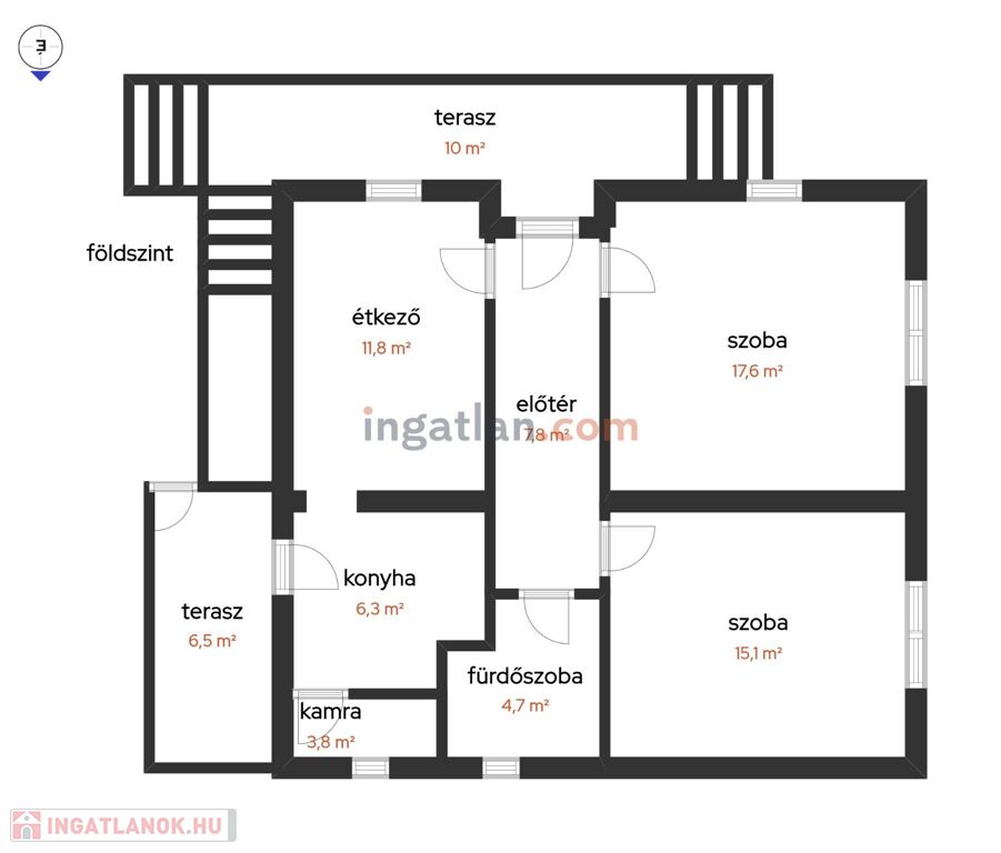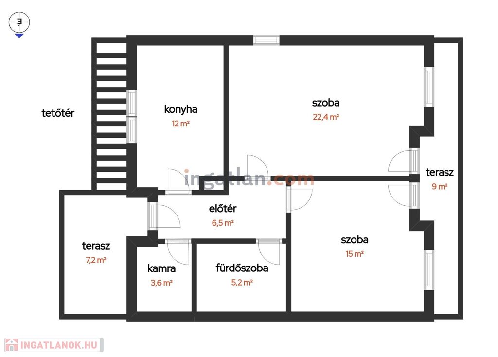 Külső lépcsőn megközelíthető, önálló lakrész