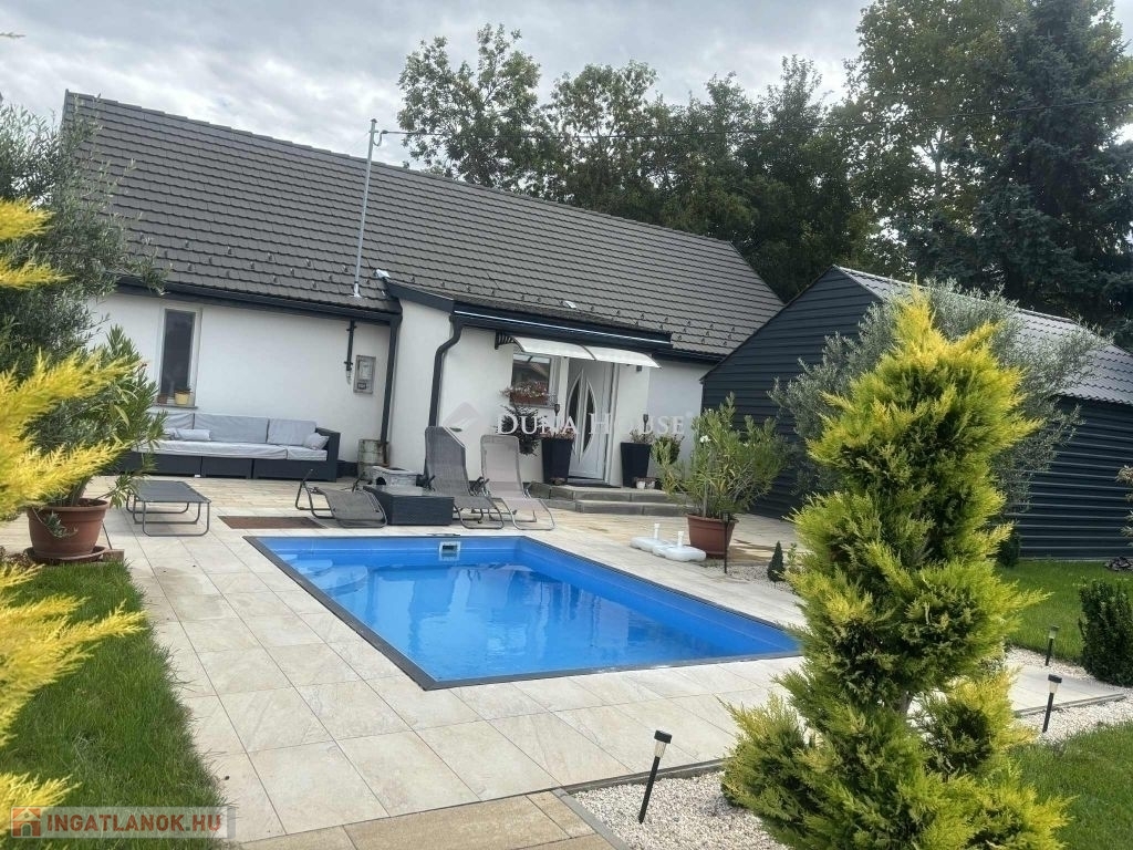 Eladó Pellérden!110 m²-es családi ház 600 m²-es parkosított telken, nappali + 2 szobás elosztással, konyhaétkezőterasszal. Infra panel és 3 klíma gondoskodik a hűtés-fűtésről. A telken medence gyönyörű parkosított udvar, valamint kétállásos garázs is helyet kapott. Ipari árammal felszerelve.Megtekintésért,bővebb információért várom hívását.