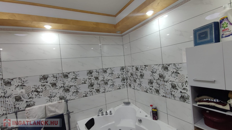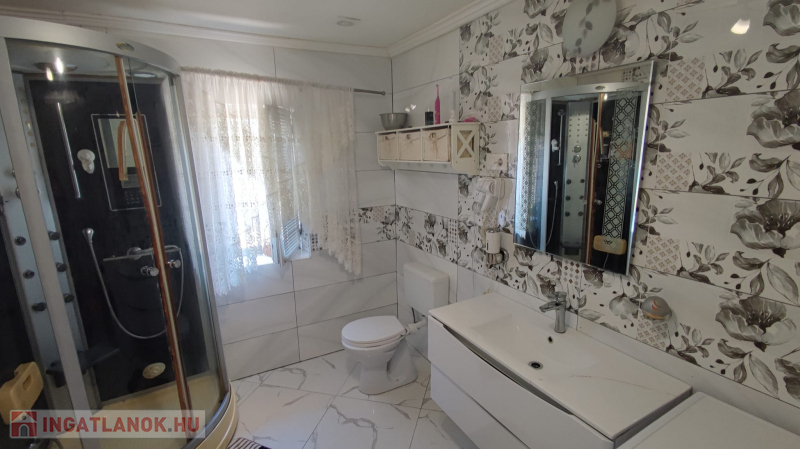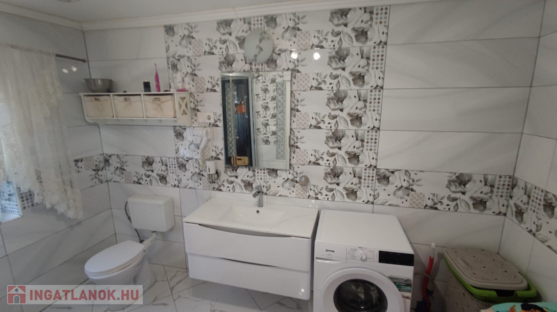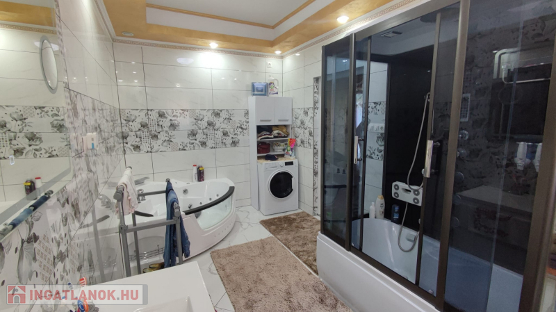 115 nm-es hasznos alapterülettel , benne óriási nappali konyhával , háló szoba , nagy méretű fürdő sarokkáddal ,és hidromasszázsos zuhany kabinnal. Padló és radiátoros fűtéssel. A kazánházban külső bejáratú fürdő s és mosó konyha lett kialakítva.