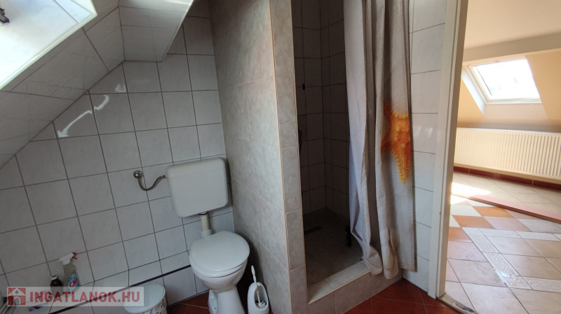 Zuhanyzós wc fürdővel , szobával, óriási nappaliból áll , és konyha kialakításra alkalmas területtel.