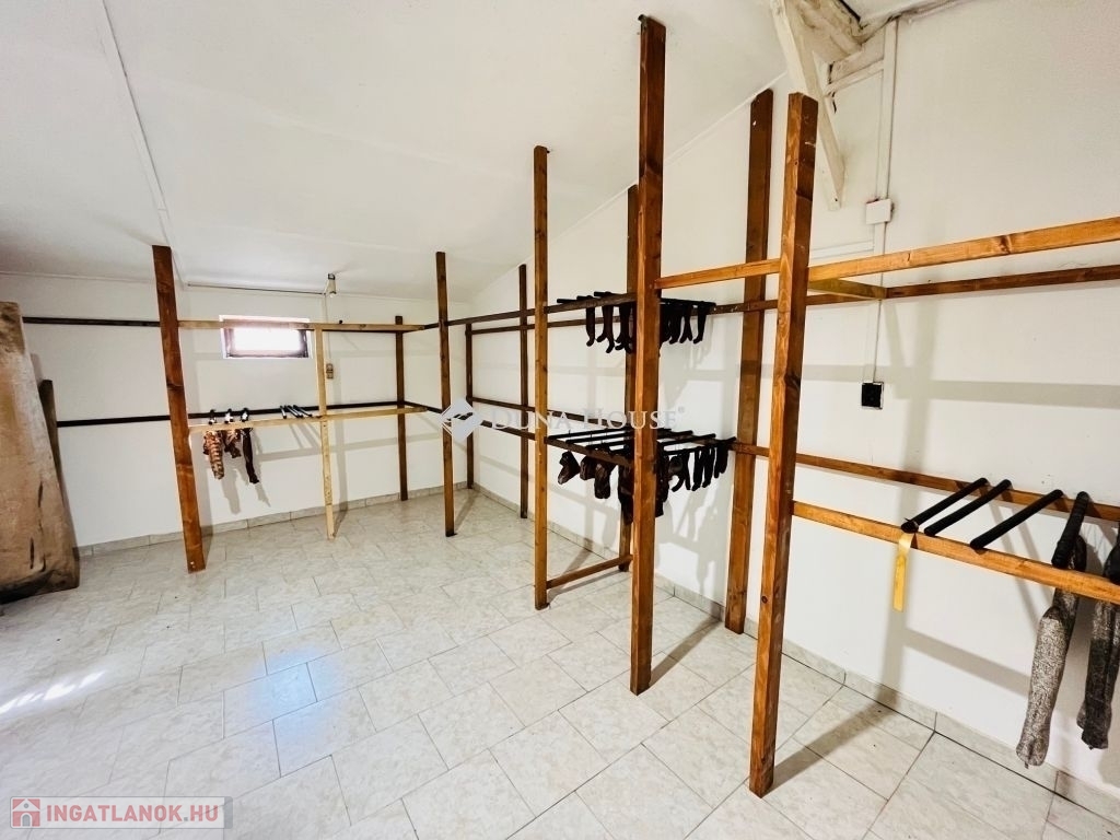 2. Üzlethelyiség: Ez egy 47 nm-es önálló épület a lakóépület mellett helyezkedik el, ami kereskedelmi célú helyiségnek és irodának lett engedélyeztetve. Alatta pince található. Vályog építésű. Fűtése gázkonvektorról és cserépkályháról üzemel. Külön villanyórával felszerelt. Egy külön lakóegységet lehet belőle kihozni felújítással.