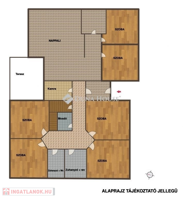 A tágas, 39 m2-es AMERIKAI KONYHÁS NAPPALI a család központja, ahonnan közvetlen kijárat nyílik a 20 m2-es, fedett TERASZRA. Az ELOSZTÁS KEDVEZŐ: összesen 6 KÜLÖN NYÍLÓ SZOBA, kettő NAGYMÉRETŰ FÜRDŐSZOBA, külön KAMRA, MOSÓSZOBA, vendég WC egészíti ki a lakóteret. A fűtés energiahatékony: radiátoros és PADLÓFŰTÉS egyaránt rendelkezésre áll, a KLÍMA pedig extra hőkomfortot teremt.