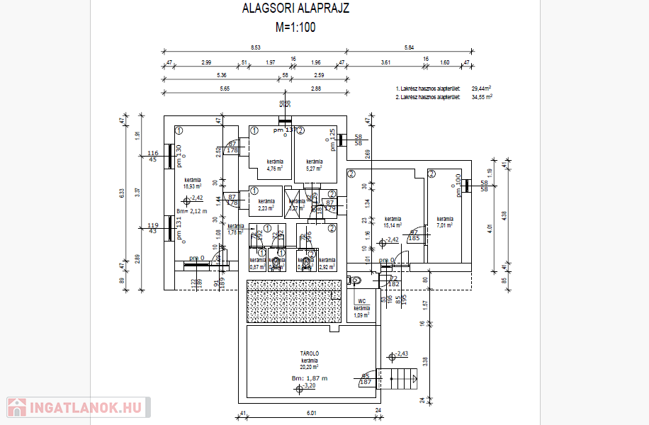 Alsó szint: 2 külön bejáratú lakrész saját fürdőkkel + tároló vizesblokkal