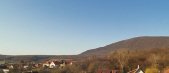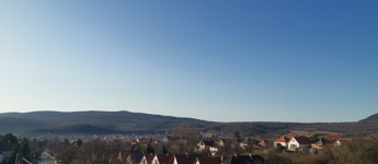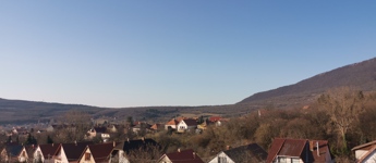 A kilátás az emeletről örökpanoráma a szemközti hegyekre és a falura.