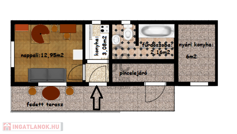 - földszint 23m2+terasz, emelet 6,5m2, közel 10m2-es erkéllyel