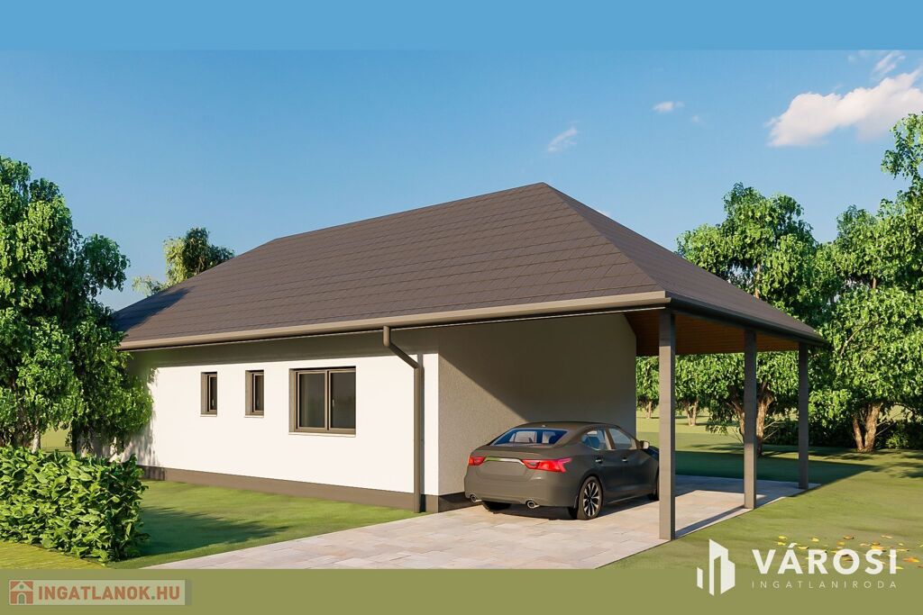 Pusztaszabolcs kedvelt részén készül ez a nappali+3 szobás, nagy teraszos, modern elrendezésű családi ház egy csendes utcában, 668 négyzetméteres telken. A gépkocsi parkolása telken belül, fedett térköves kocsibeállóval lesz megoldva.