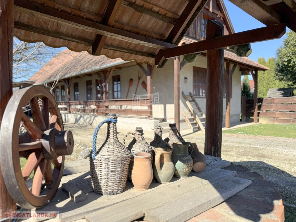 Tulajdonosa kényelméért felel még a 20 m2 - es tornác, egy féltetős fatároló, 3 garázs - melyből 2 zárható, egy szigetelt konténer, melyet szaunának kezdtek átalakítani, valamint egy 30 m2 -es, mezőgazdasági gépek számára alkalmas fedett beálló.