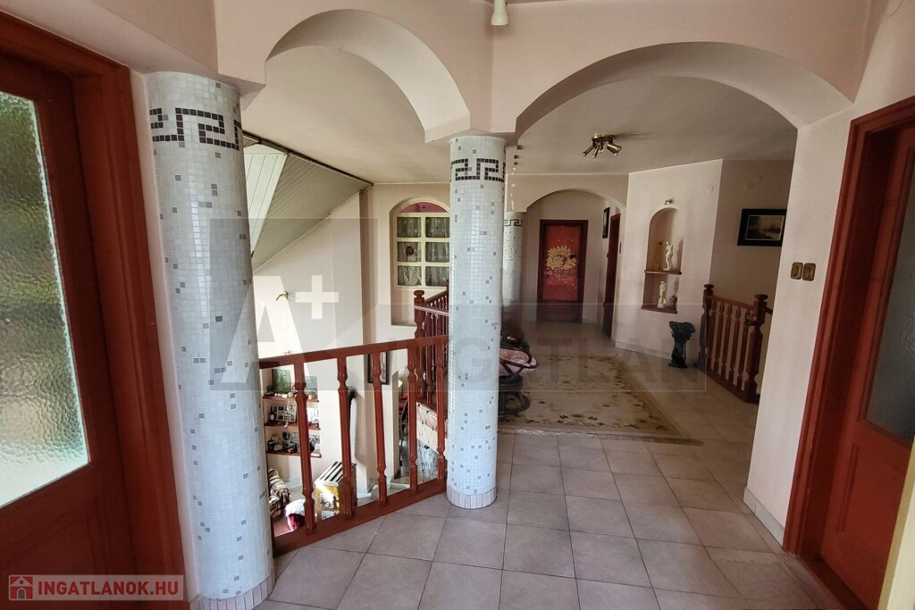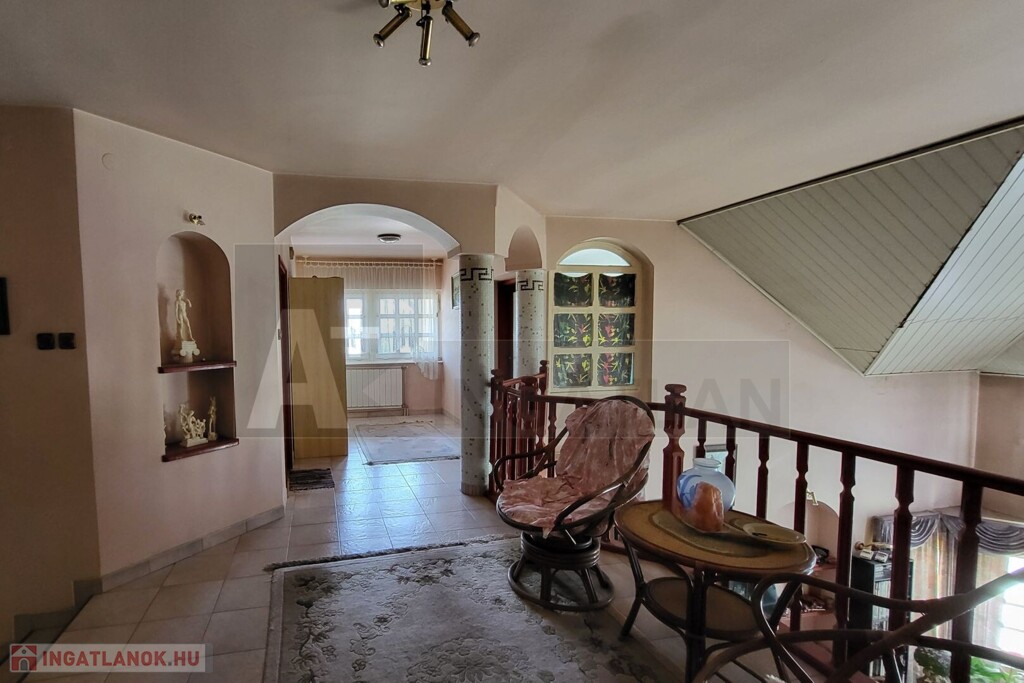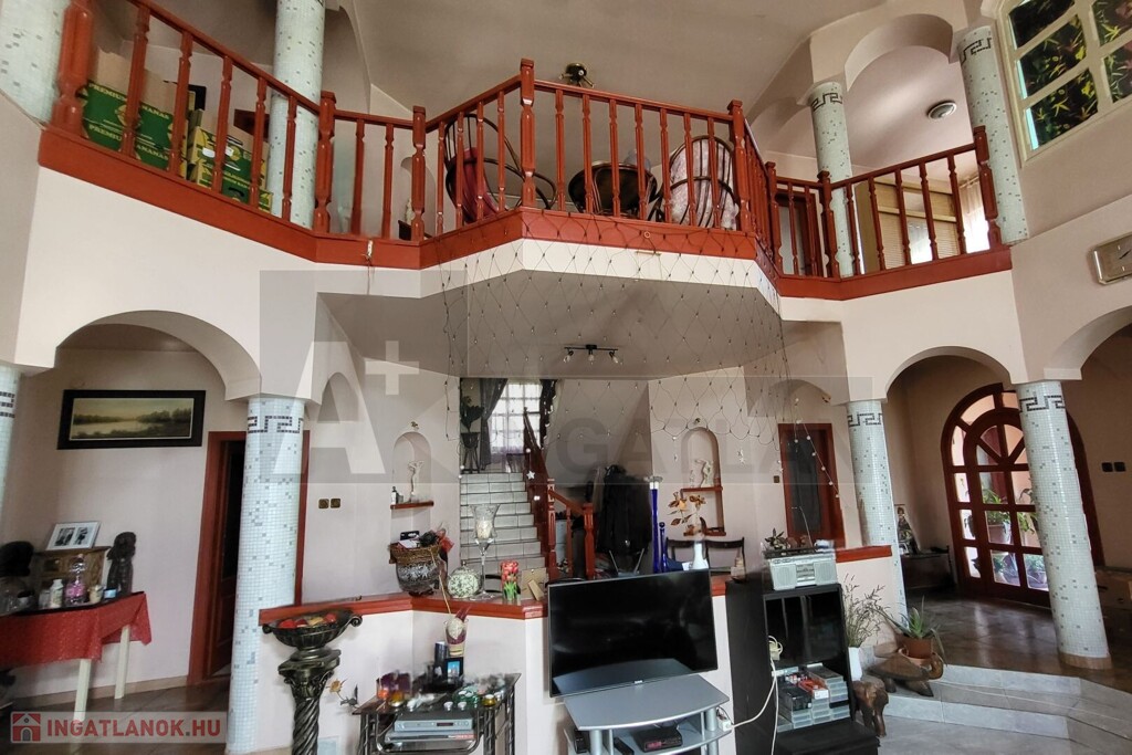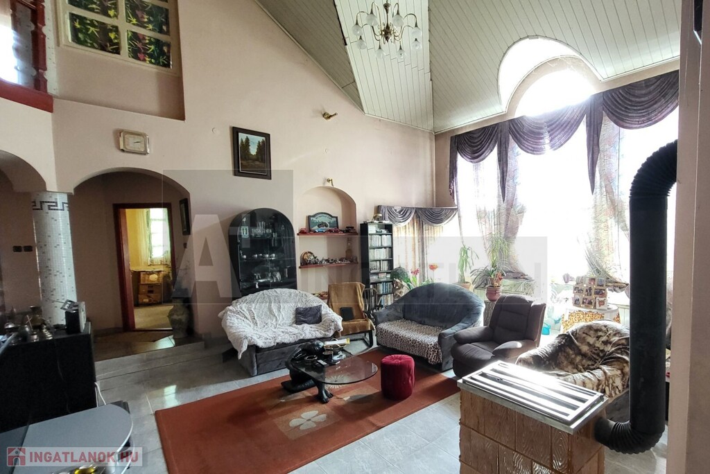 Pusztaszer központjában eladó 1990-ben épült, 2 szintes 225m2-es, 6 szobás, különleges elrendezésű tágas, világos családi ház. A lakóházhoz kapcsolódik egy 1992-es építésű 219m2-es épület, mely méretének és kialakításának köszönhetően többféle tevékenységre alkalmassá tehető. Mindkét épület kitűnő szerkezeti állapotban van, egyedi elképzelések alapján, a 90-es évek legkorszerűbb építőanyagaiból készült.
