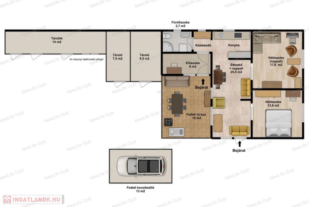 A jelen hirdetésben rögzített, az ingatlannal kapcsolatos adatok, információk, Megbízó tájékoztatása alapján kerültek meghatározásra.