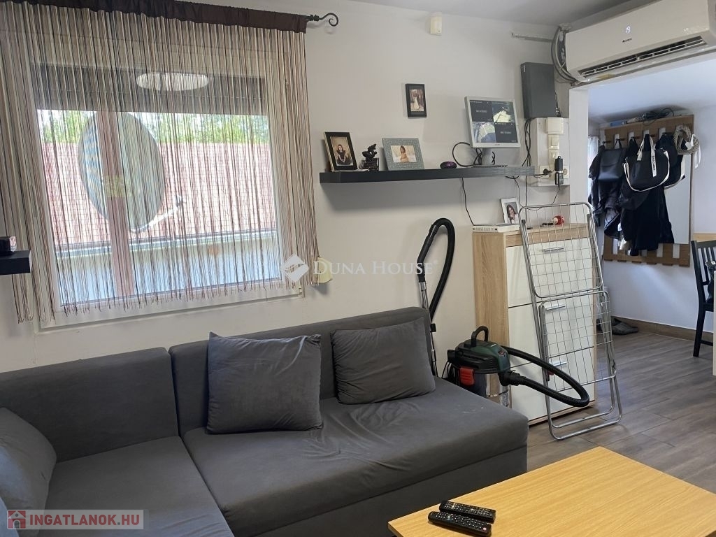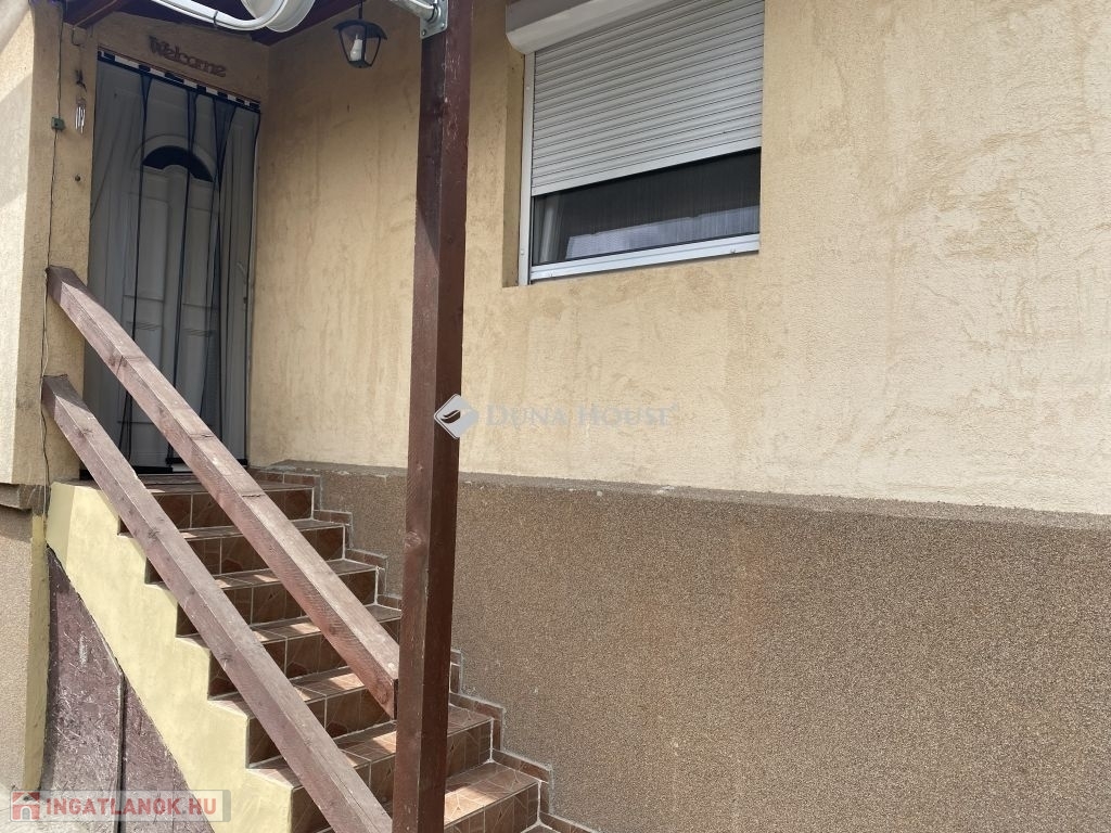 A lépcsős, burkolt teraszról az amerikai konyhás nappaliba lépünk, ahonnan két hálószoba,valamint egy zuhanyzós fürdőszoba toalettel nyílik.