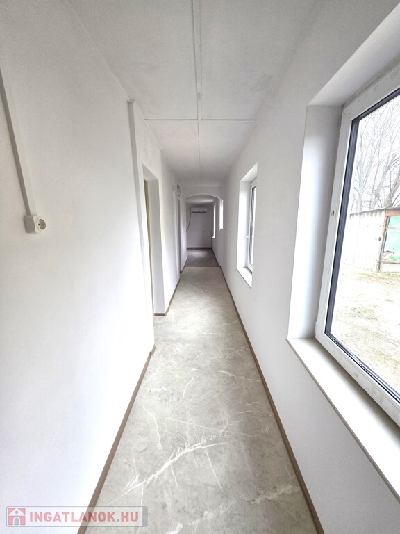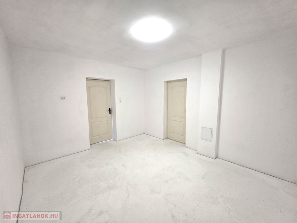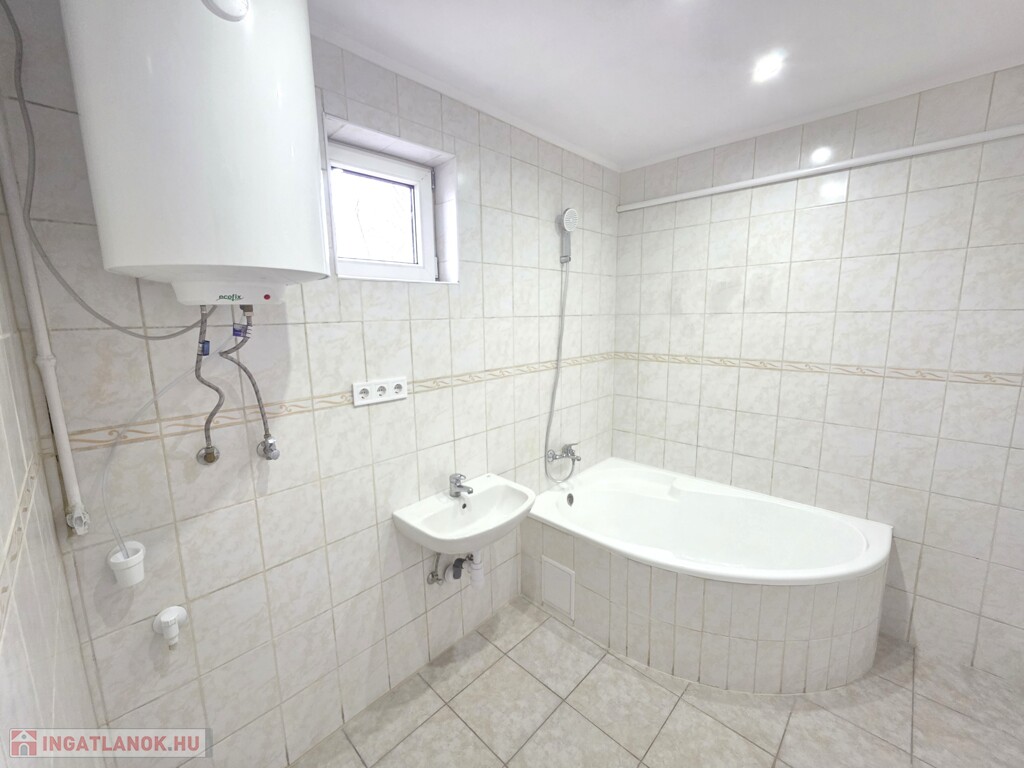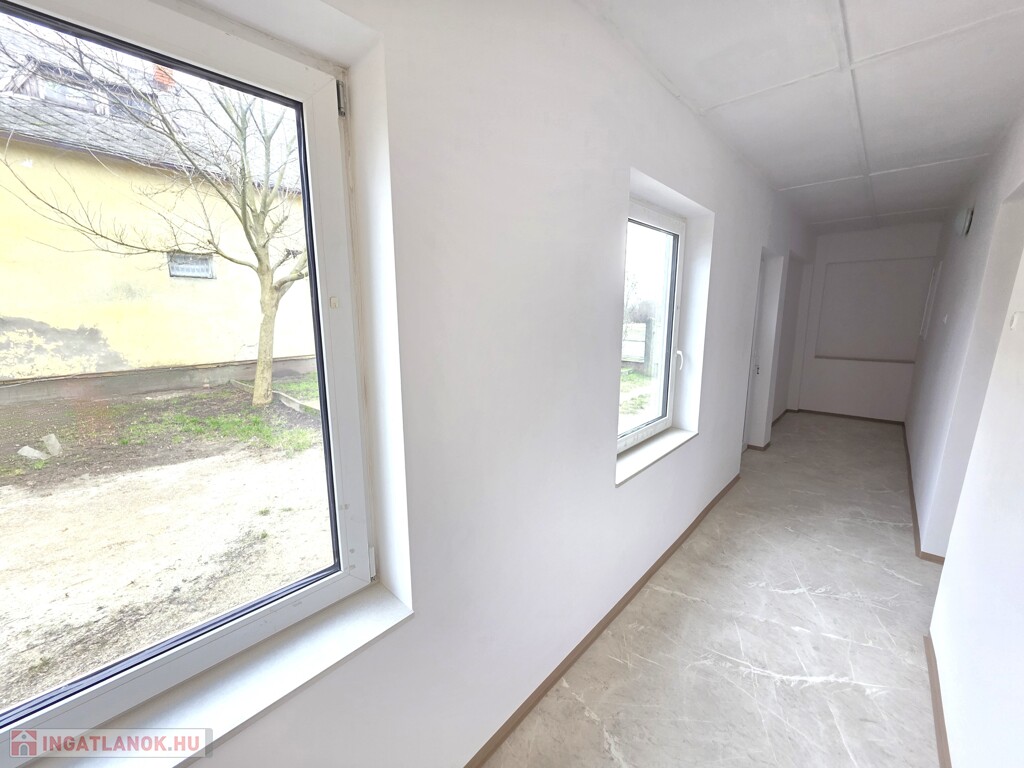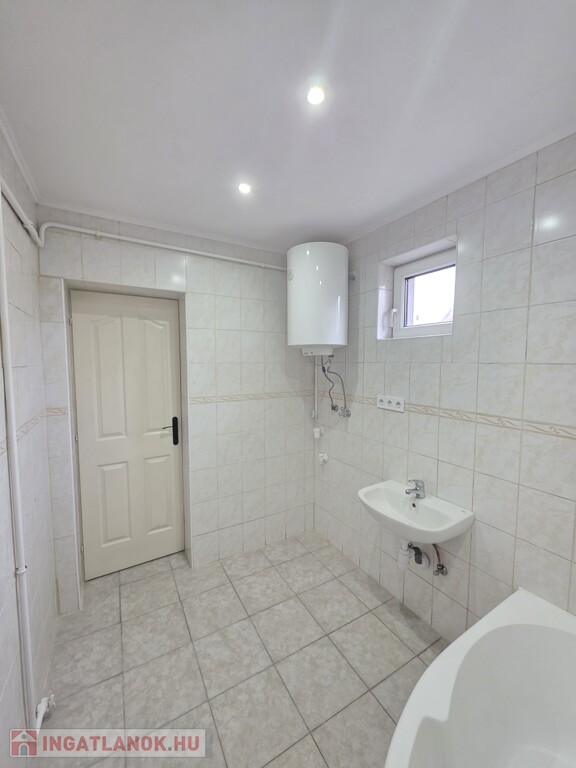 A ház elrendezése ideális, folyosóról nyíló szobák, konyha étkető, külön fürdőszoba és mellékhelyiség.