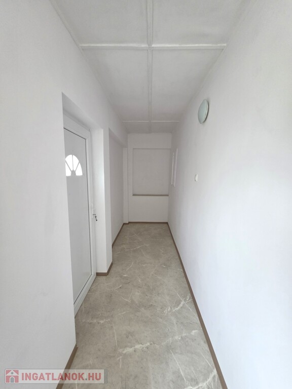 A padlóburkolat a konyhában járólap, a nappaliban laminált padló, a folyosón pedig pvc.
