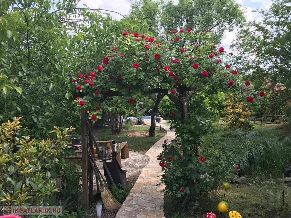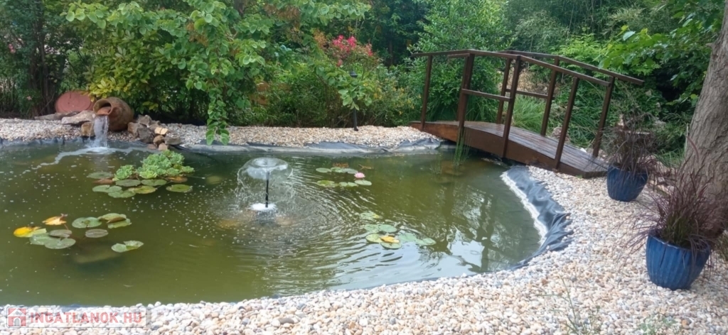 A hangulatos udvar valódi élménytér: hőszivattyús fűtésű medence keringetőrendszerrel, sütögetőhely, két pagoda, valamint bőséges tér a családi és baráti összejövetelekhez.