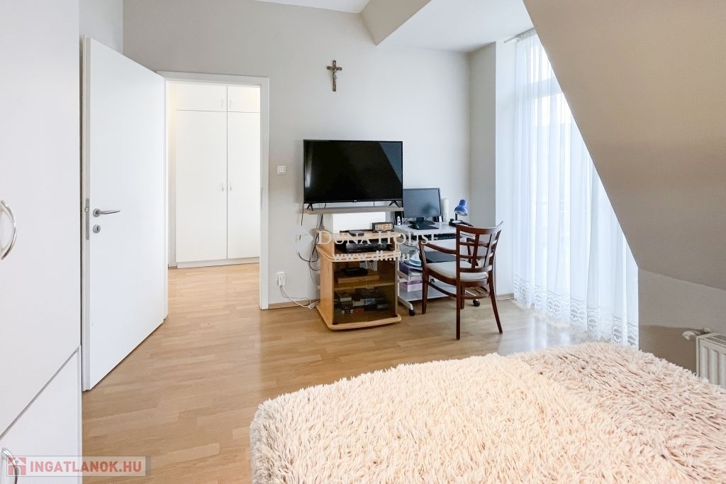 ELADÓ LAKÁS SOLYMÁRON, központi helyen, kiváló közlekedéssel és szolgáltatásokkal.Solymár frekventált részén, közvetlen közel a tömegközlekedési lehetőségekhez és számos szolgáltatáshoz, eladó egy 80 m²-es, tágas és világos lakás, amely minden igényt kielégít.Az ingatlan két kényelmes méretű szobával, egy hangulatos nappalival, étkezővel, jól felszerelt konyhával és egy praktikus gardróbszobával rendelkezik. A fürdőszoba és a WC külön helyiségben található, ami növeli a lakás komfortját.Különlegességek: Két erkély, ahol a reggeli kávét nyugodt környezetben fogyaszthatja el, valamint egy kis terasz. A lakás rendkívül világos, köszönhetően a jól átgondolt elosztásnak és a nagy ablakfelületeknek, amelyek kellemes atmoszférát teremtenek.Közlekedés: Közelben található a vasútállomás, valamint a távolsági és helyi buszjáratok megállói, amelyek gyors és kényelmes összeköttetést biztosítanak Budapest irányába. A II. kerület mindössze néhány perc autóval, ahonnan szintén számos közlekedési lehetőséggel érhető el Budapest több kerülete is.Szolgáltatások és környék:A lakás környezetében számos bevásárlási lehetőség elérhető, köztük Auchan, Spar, Aldi, Lidl, így minden napi szükséglet könnyedén beszerezhető. A közelben található játszótér, óvoda és iskola is, ami ideális választás lehet családosok számára.Parkolás:Az utcán.Energetikai besorolás: A+Ez az ingatlan ideális választás mindazok számára, akik nyugodt, zöldövezeti környezetben szeretnének élni, ugyanakkor fontos számukra a jó közlekedési lehetőség.A társasház rendezett anyagi helyzetű, a lakóközösség kiváló.További információkért keressen bizalommal a hét bármely napján!