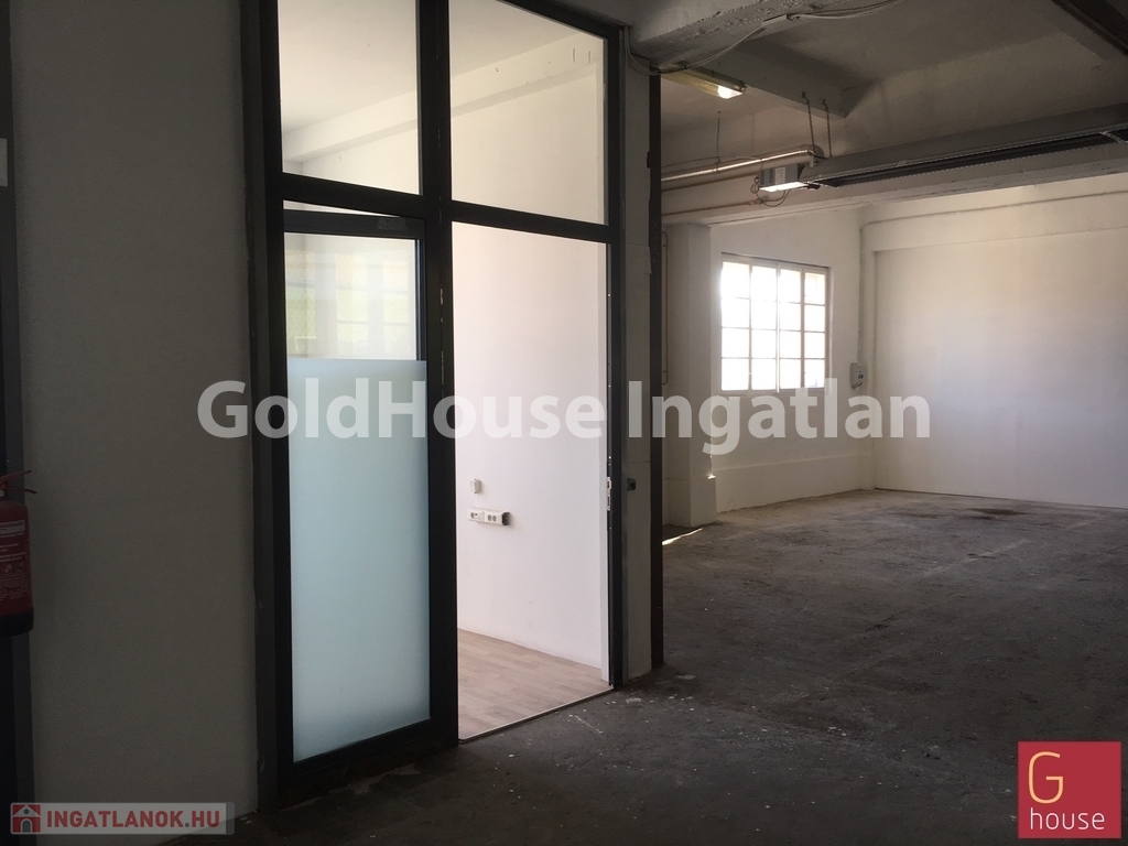 MŰHELY irodaház földszintjén 161m2-es fűtött, ipari árammal és vizes blokkal ellátott, személyi bejáróval és garázskapuval rendelkezik.