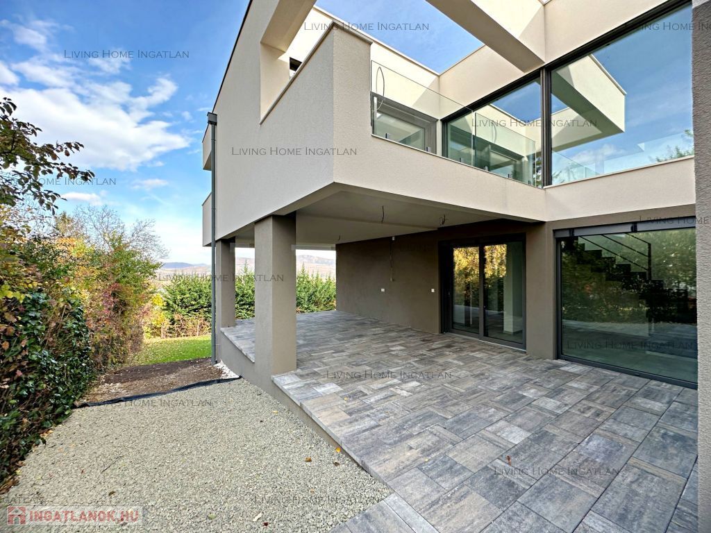 A newly built, premium quality detached family home is for sale on one of Solymár's most beautiful hillsides with panoramic views. The light flooding in through the huge glass surfaces and the stunning views show a different face in every season – morning coffee on the terrace, sunset in the living room in the evening. The eternal panorama of the Buda Hills and the clean, modern architecture create perfect harmony here.The 245 m² home with 5 rooms is unique for its floor-to-ceiling glass surfaces and panoramic terraces. The Vaillant heat pump system, ceiling cooling and heating, heat recovery ventilation, and premium windows and doors with shutters ensure the highest level of comfort. Every detail here is about quality.