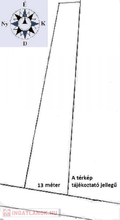 Telekszélesség az utcafronton: kb. 12,5 m, hátrafelé szűkül