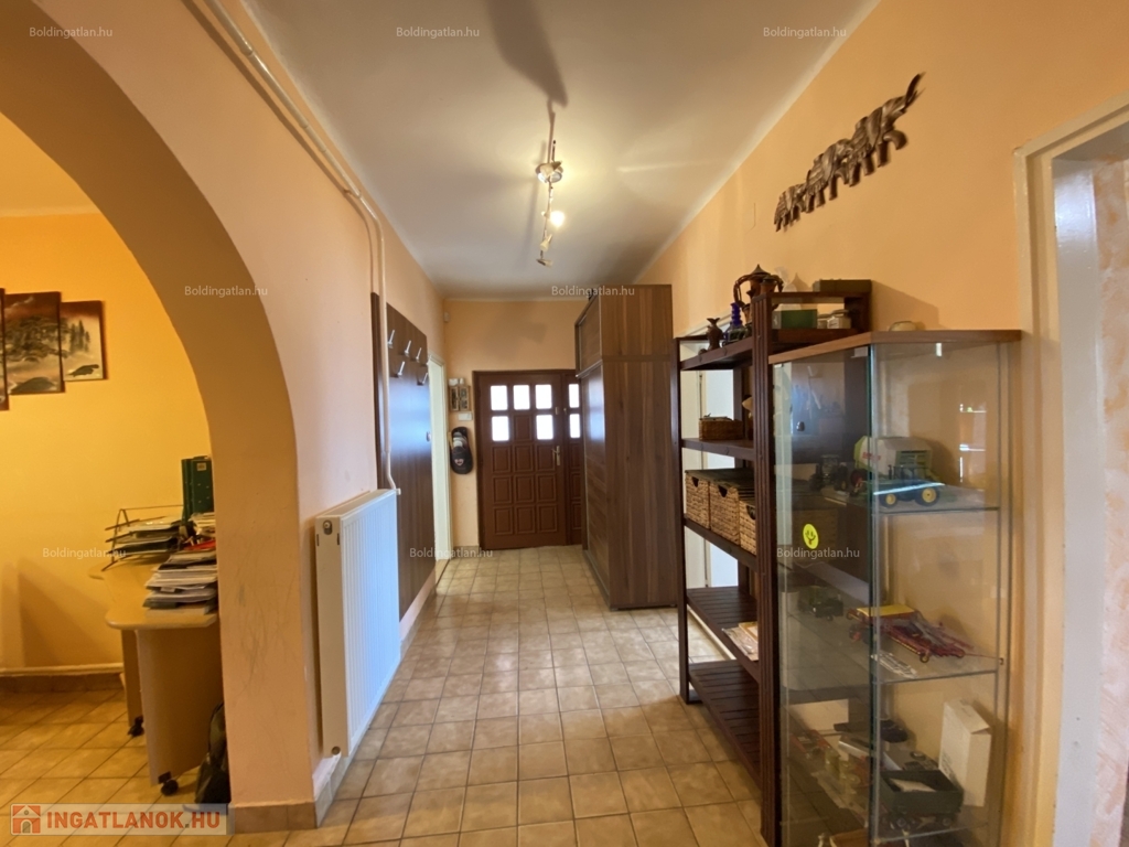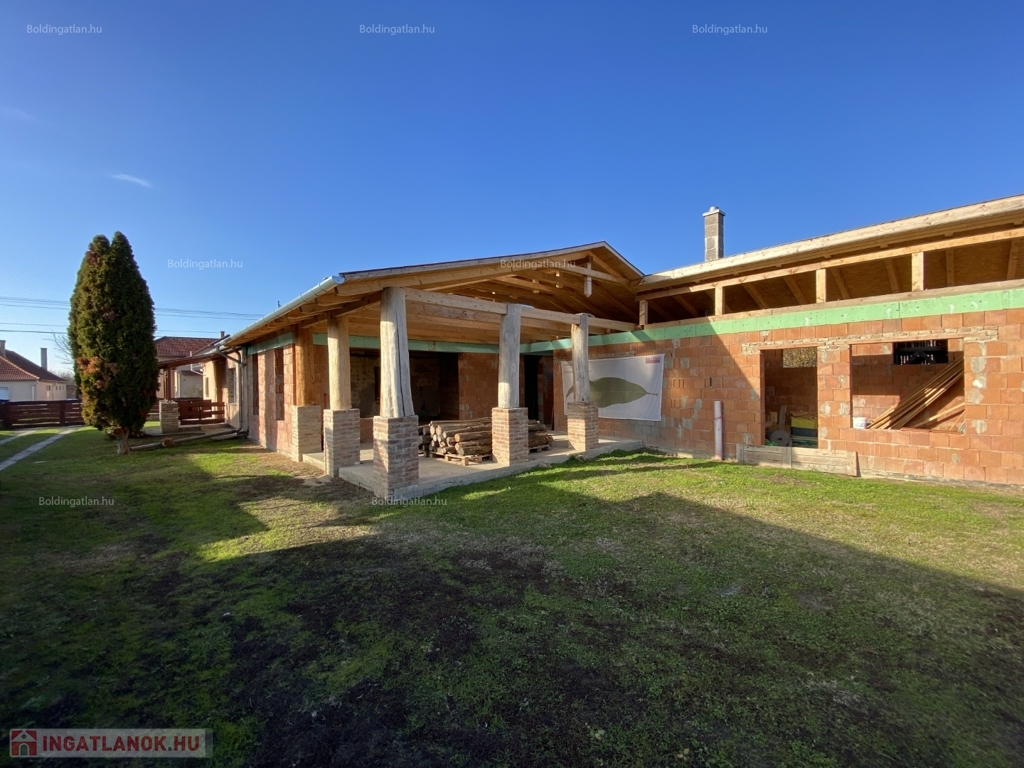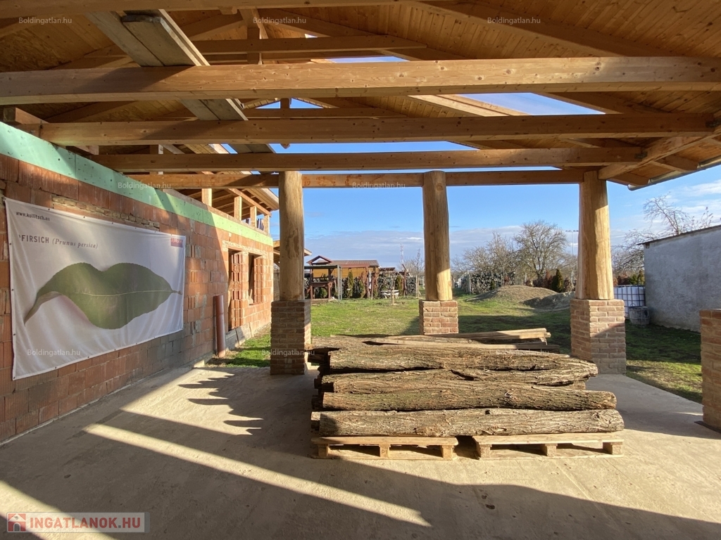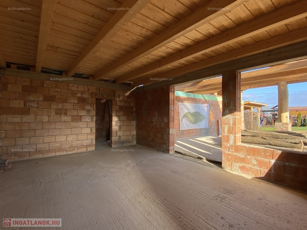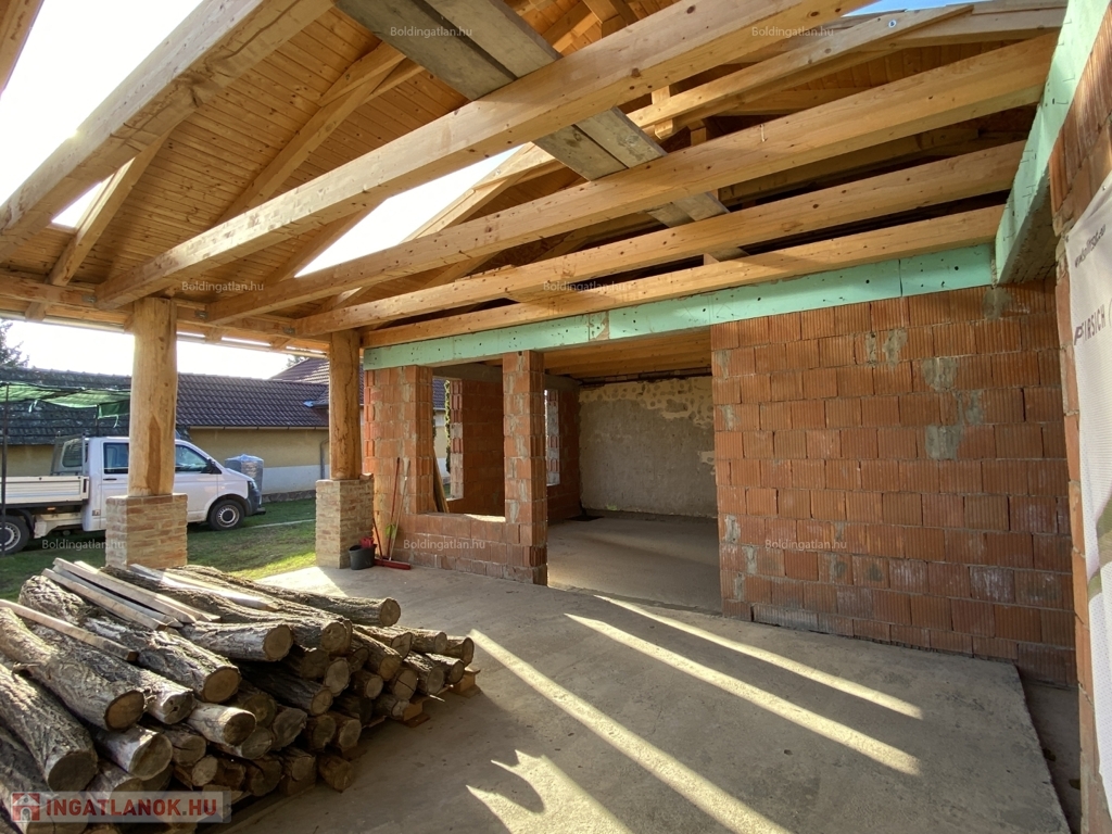 Somogyváron - a Balatontól csupán 20 km távolságra - kellemes környezetben lévő 91 m2-es - akár azonnal birtokba vehető -, vállalkozásra is alkalmas családi ház, a képeken látható készültségi fokban lévő bővítménnyel eladó. A lakóházban előtér, 3 szoba, étkező, konyha, fürdőszoba, wc helyiségek kerültek kialakításra, a fűtése és melegvíz ellátása Viessmann kombi gázkazánnal megoldott. A tulajdonos a 68,72 m2-es hozzáépített épületrészének, illetve a 41,5 m2-es, keleti fekvésű fedett terasz bővítésének munkálatait már elkezdte, amely bővítmények jelenlegi műszaki állapota, és készültségi foka a képeken látható. A kialakításra kerülő, beépítendő térnek a rusztikus stílusú, egyedi atmoszféráját a nyitott - több mint 4 m széles - fa gerendás födém, továbbá a belső, zárt udvar felé néző ablakai biztosítják. Az udvarban 1 személyautó részére garázs és pince van, továbbá mezőgazdasági gépek tárolására, vagy egyéb célra, vállalkozásra is alkalmas 84 m2-es könnyűszerkezetes épület áll. Telek: 2.104 m2