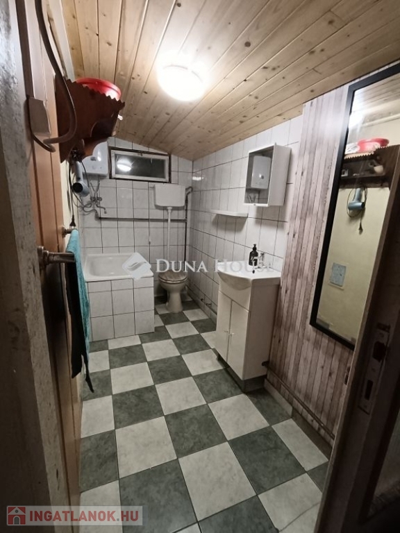 Fürdőben ülőkád tusolóval, melegvíz ellátásra egy 10L-es nyílt rendszerű villany bojler került beépítésre.