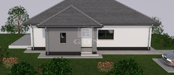 A falazat 30 cm-es Porotherm téglából készül, 15 cm-es EPS homlokzati hőszigeteléssel, 10 cm lépésálló padlószigeteléssel és 30 cm ásványgyapot födémszigeteléssel.