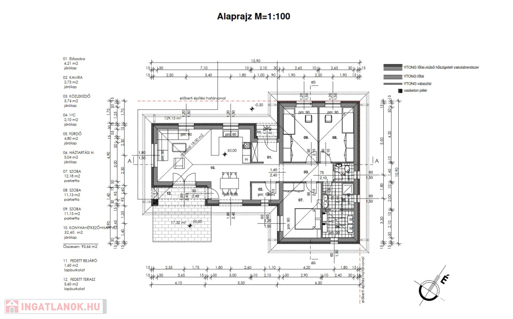 Műszaki tartalom: - 30-as ytong tégla